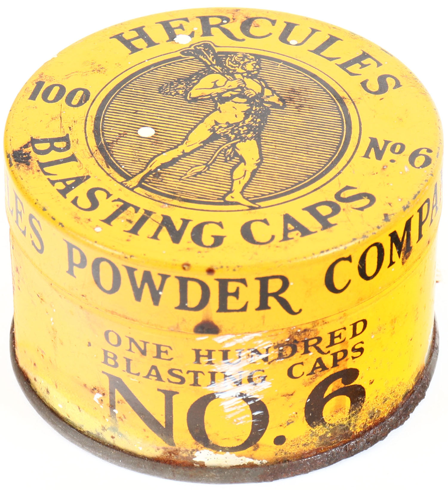Hercules blasting caps, empty, has scuffing. Grade: Very Good + - Value: 16 to 60