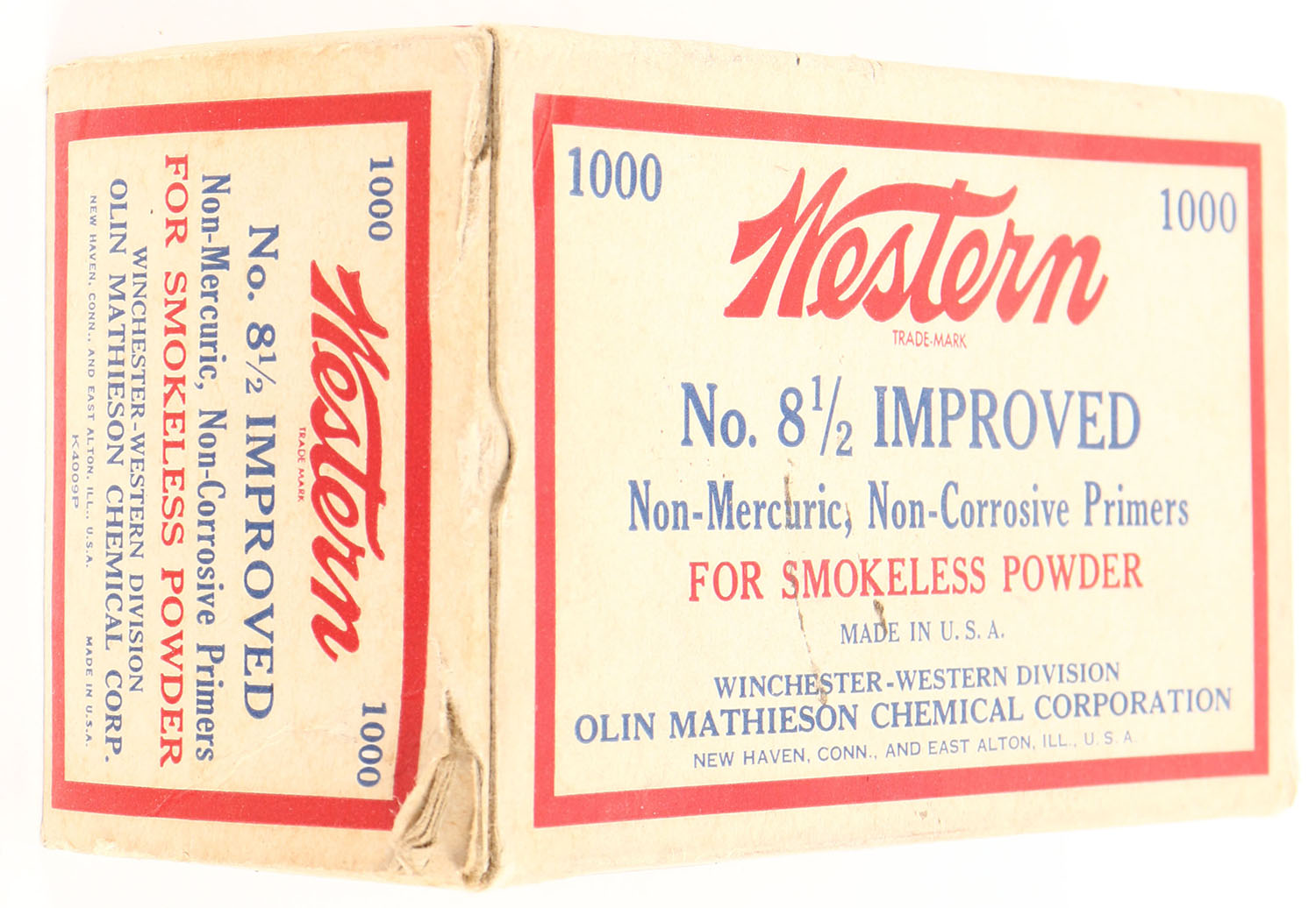 Western No 8 1/2 improved primers, FULL, 1000 primer brick. Grade: Excellent - Value: 30 to 90