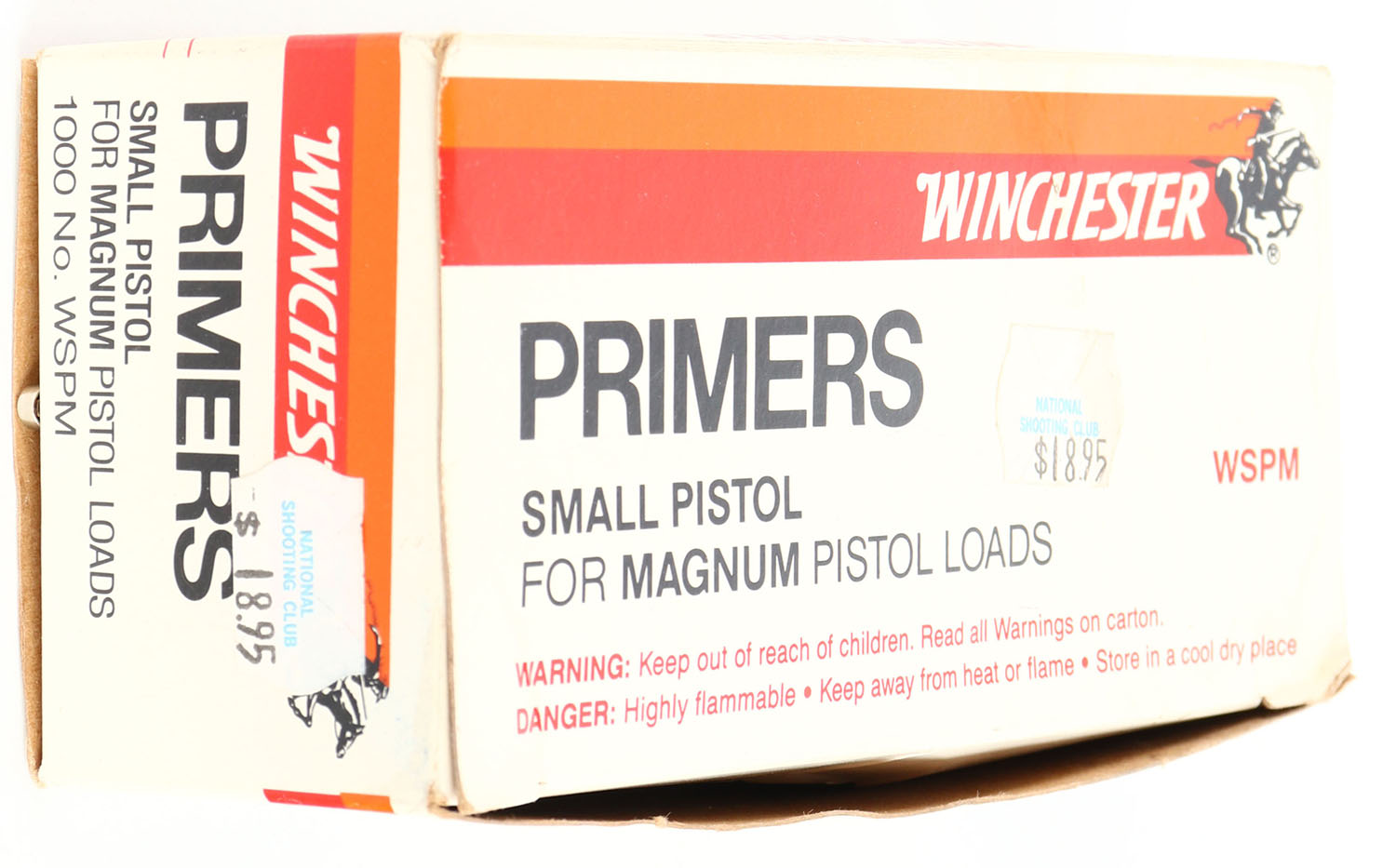 Winchester small pistol primers, 50% Full, 1000 primer brick. Grade: Excellent - Value: 16 to 60