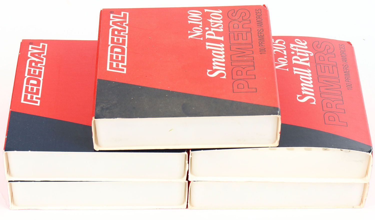 lot of 5 Federal small pistol primers, FULL. Grade: Excellent - Value: 10 to 50