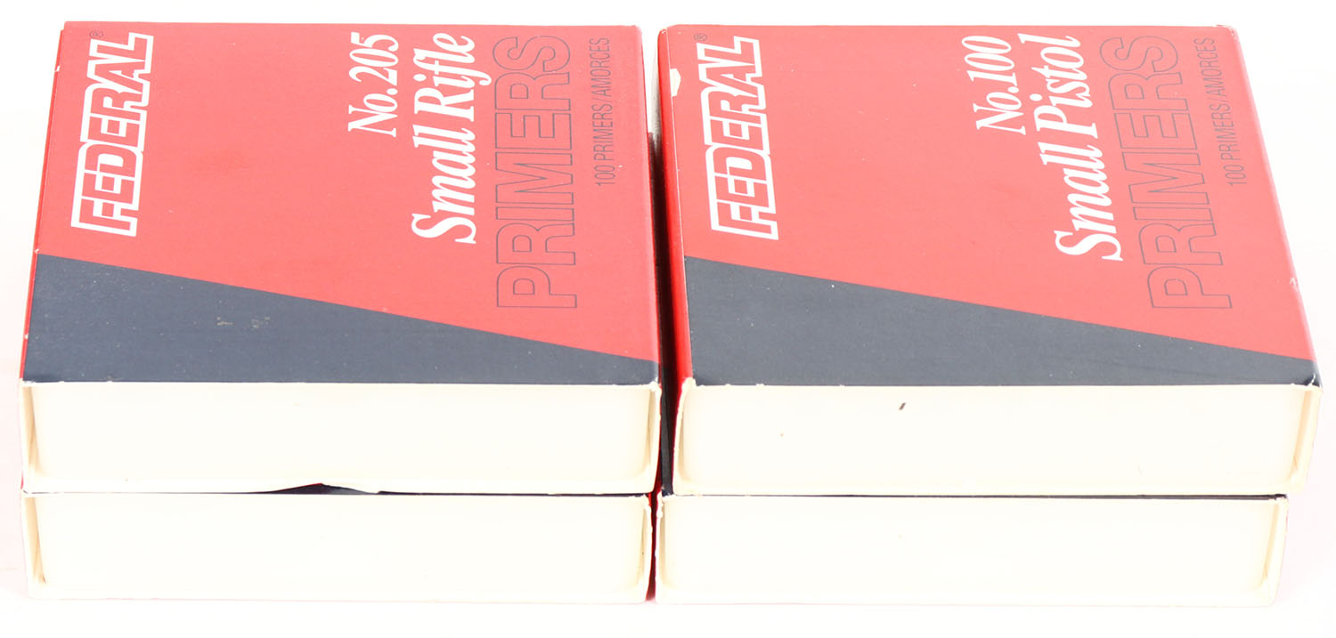 lot of 4 Federal small pistol primers, FULL. Grade: Excellent - Value: 10 to 50