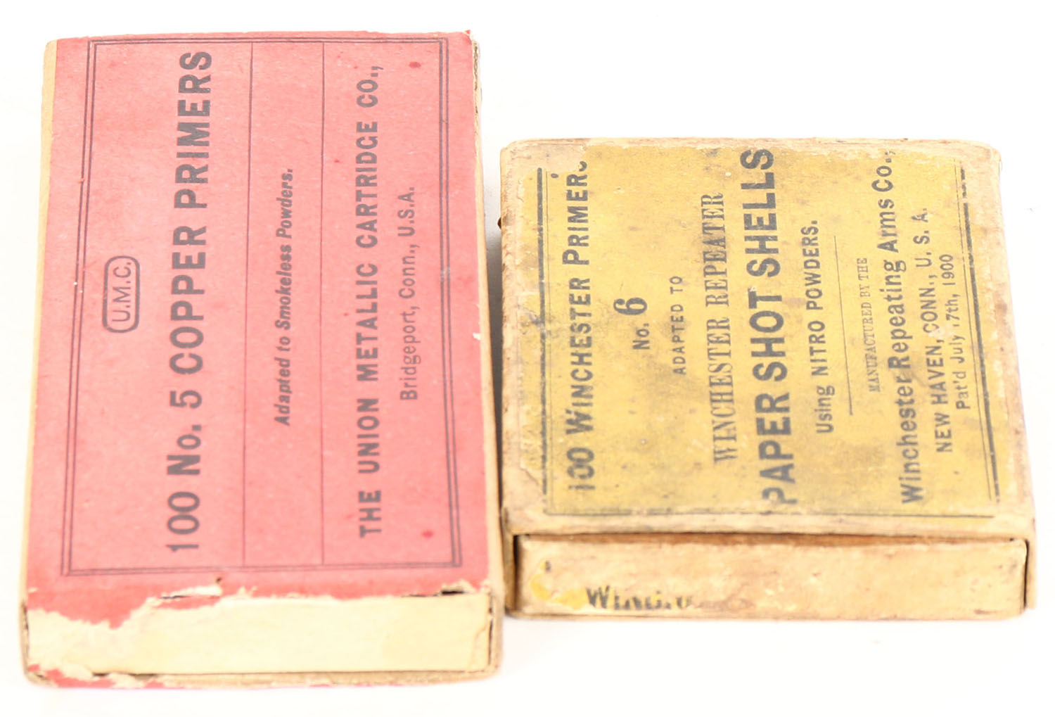 lot of 2 Winchester and UMC primer boxes, both partial. Grade: Excellent - Value: 6 to 50