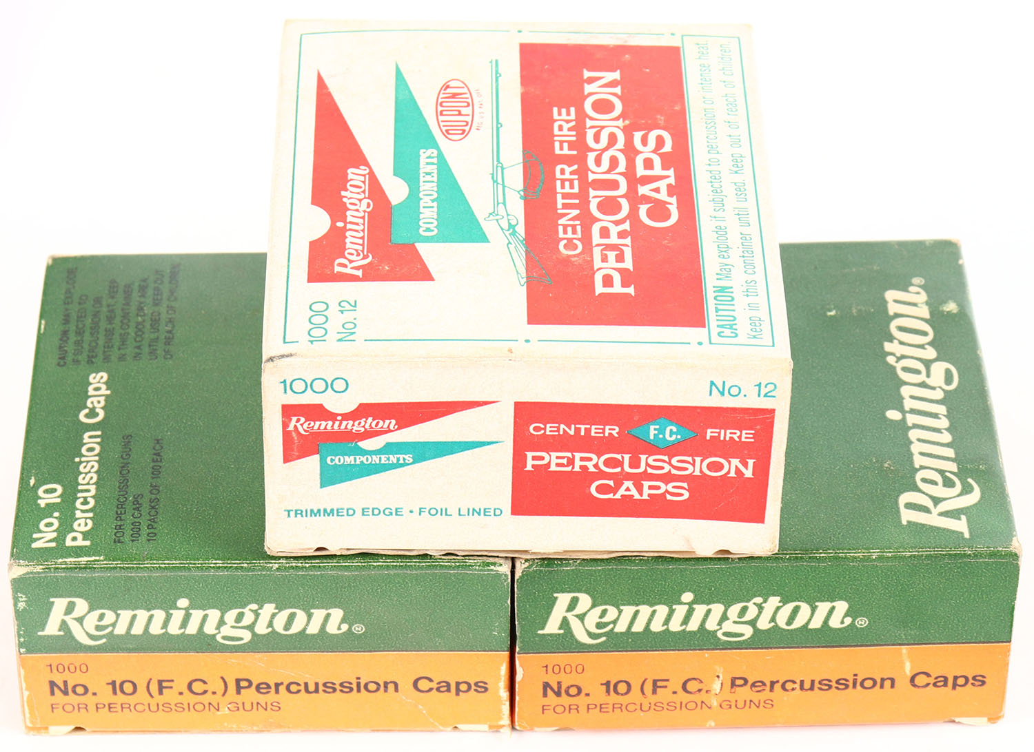 Lot of 3 Remington No 10 and 12 Percussion caps, FULL. Grade: Excellent - Value: 20 to 80