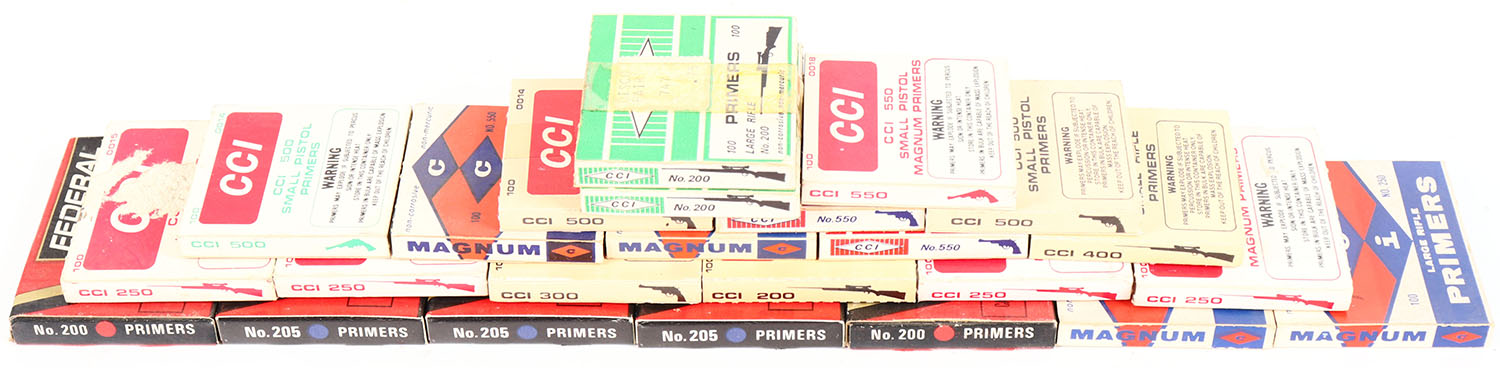 Large lot of primer boxes, some partial some full. Grade: Excellent - Value: 20 to 100