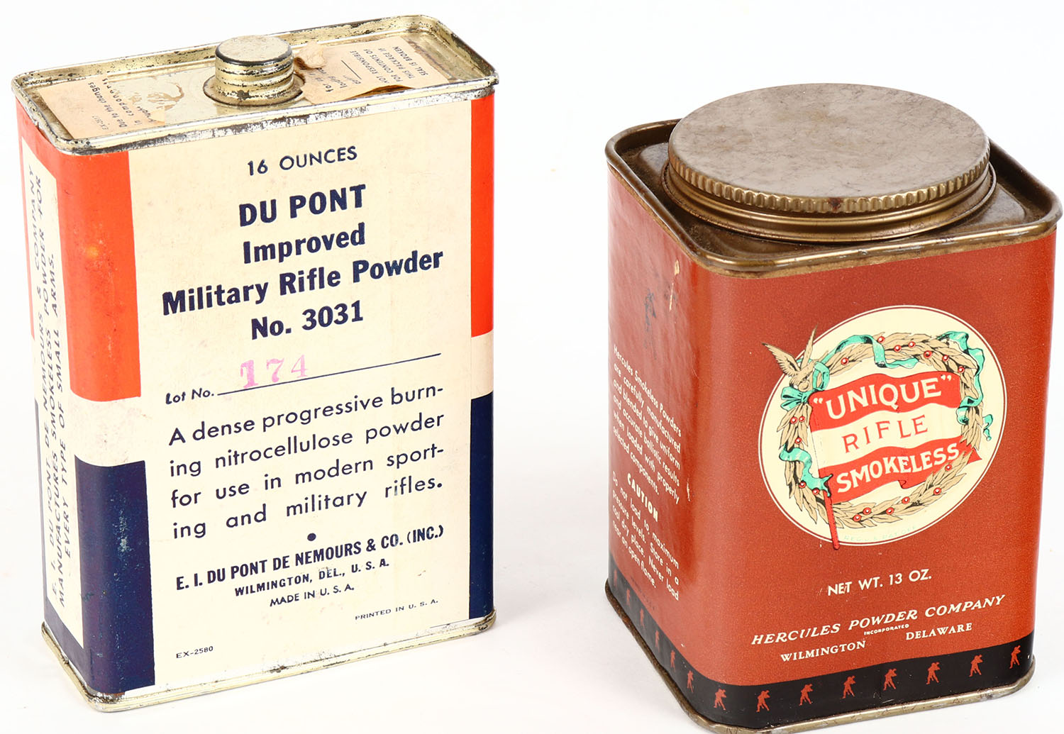 Lot of 2 Rifle Powder tin, both partial. Grade: Excellent - Value: 2 to 20