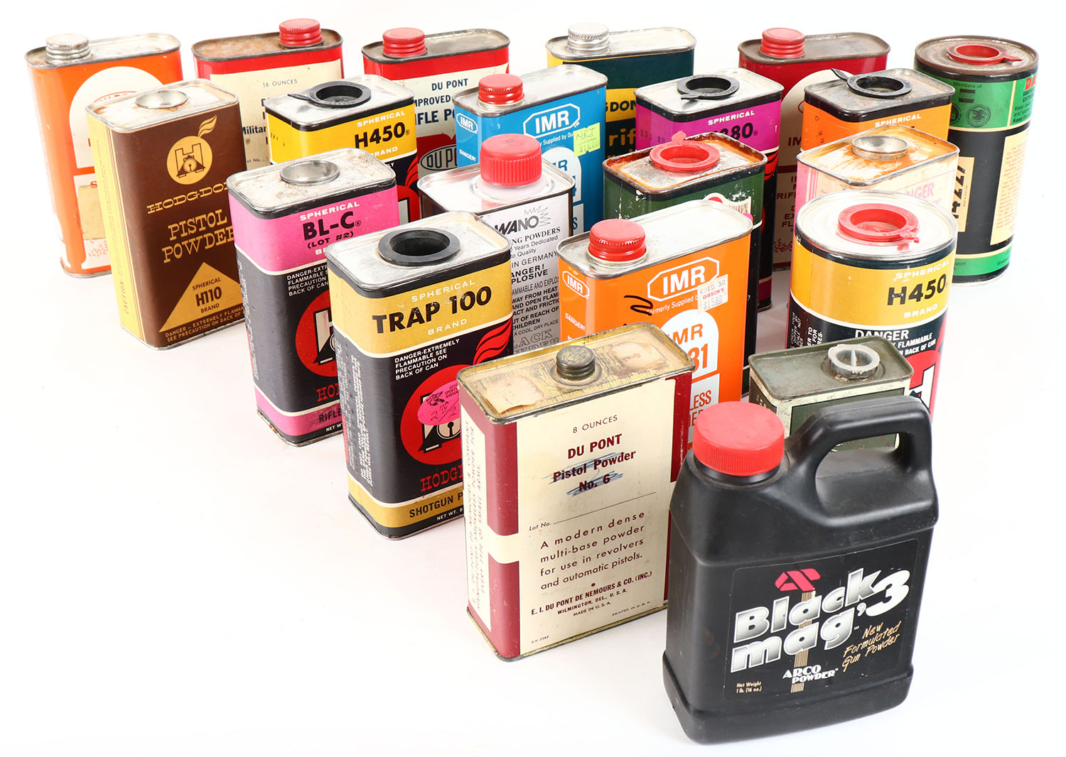 Large lot of rifle powder tins, all empty. Grade: Excellent - Value: 4 to 40