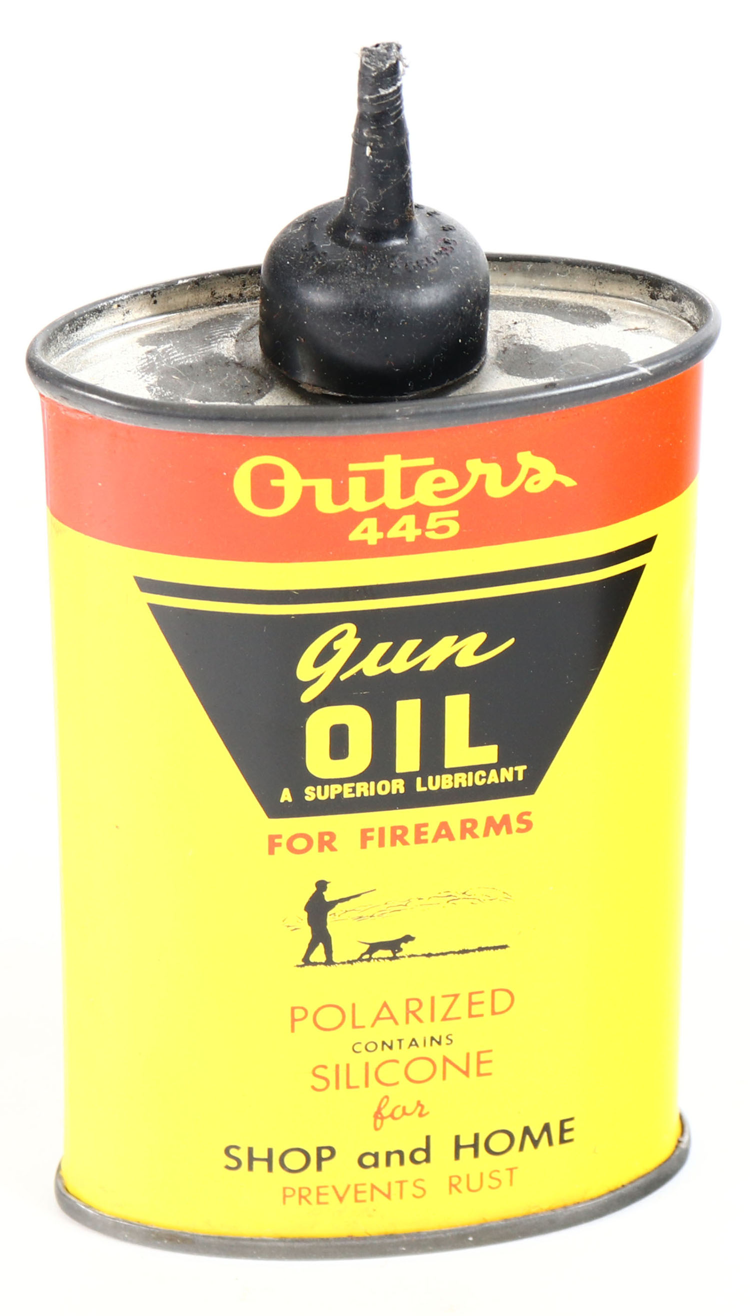 Outers Gun Oil Tin, lead cap, empty, bright and clean. Grade: Excellent - Value: 4 to 40
