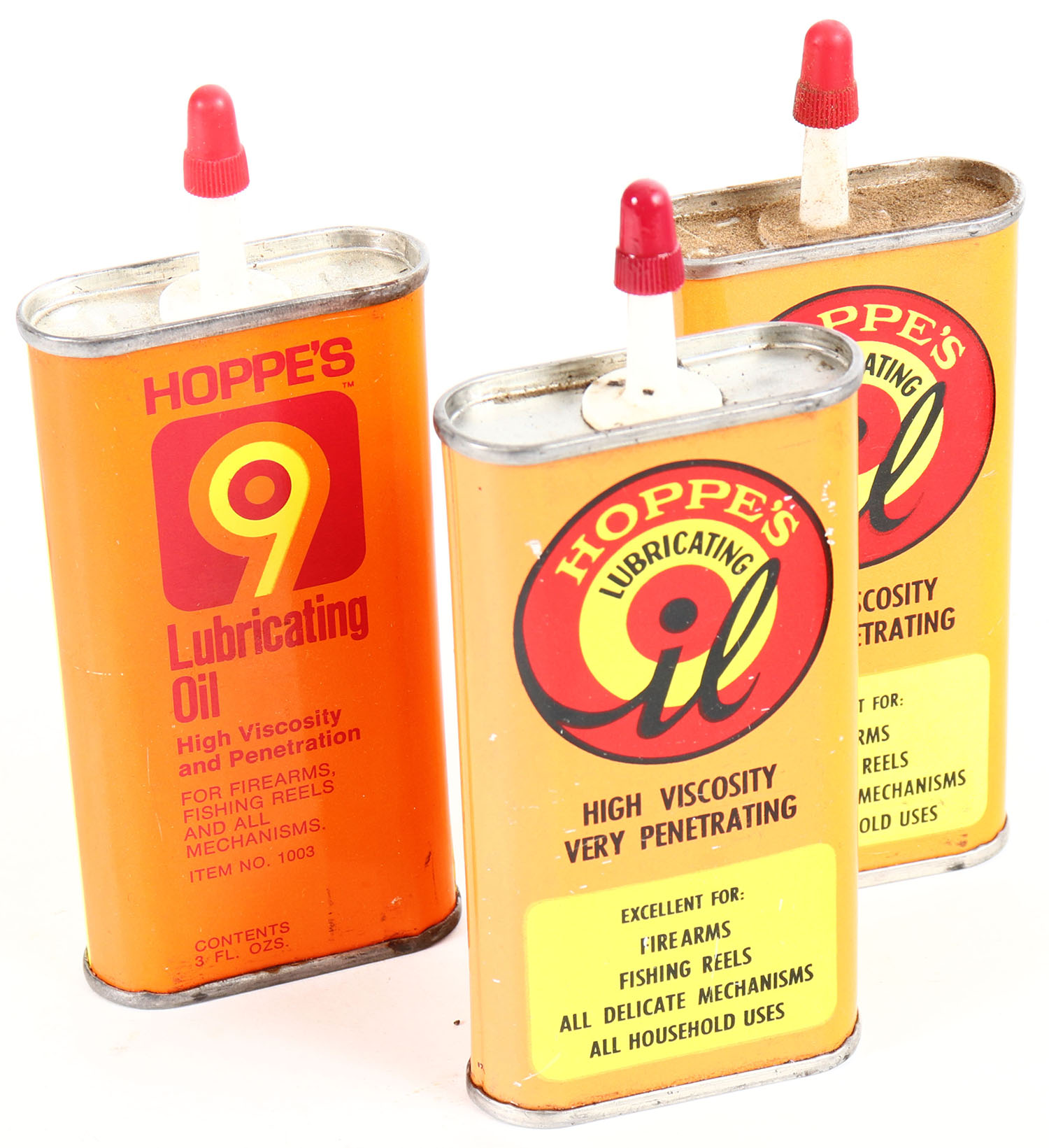 Lot of 3 Hoppes Gun Oil Tins, partial, bright and clean. Grade: Excellent - Value: 2 to 40