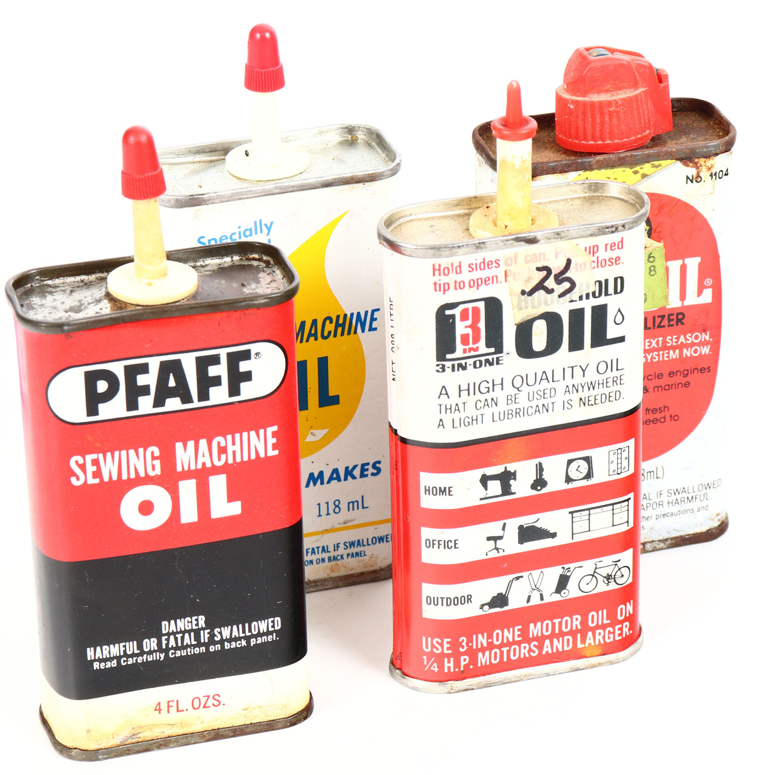 Lot of 4, oil tins, partial, some age soiling. Grade: Very Good ++ - Value: 4 to 40