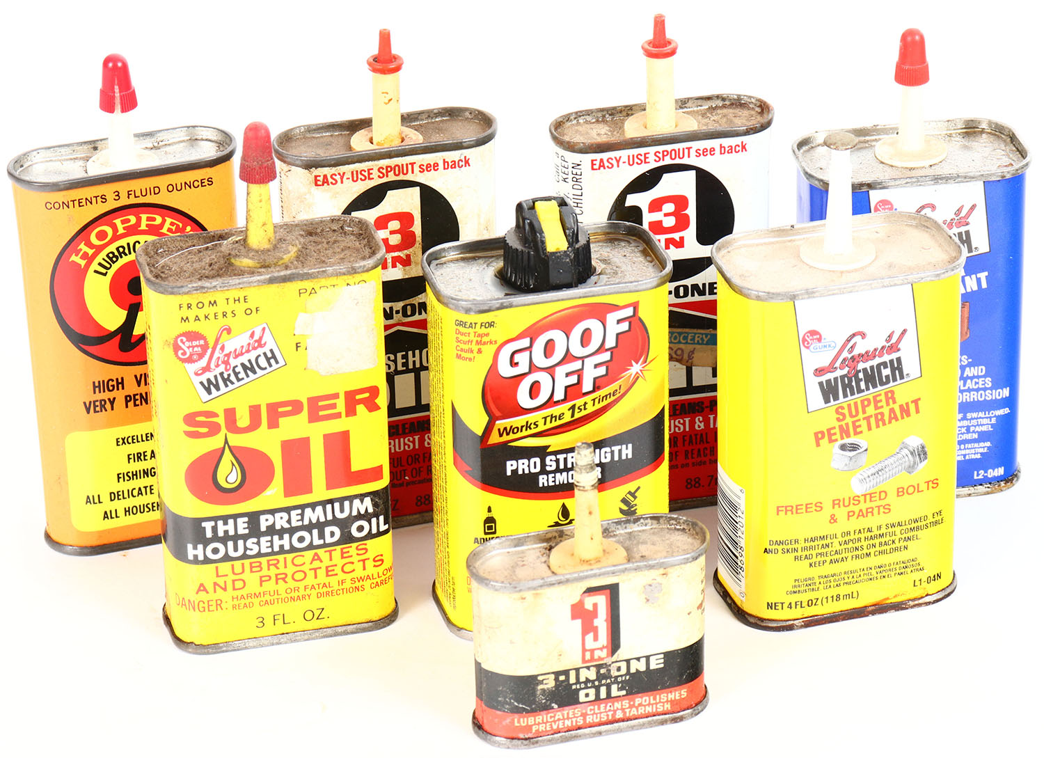 Lot of 8, oil tins, partial, some age soiling. Grade: Very Good ++ - Value: 6 to 50