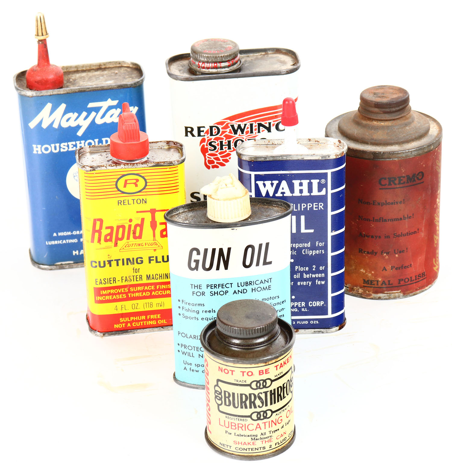 Lot of 7, oil tins, partial, some age soiling. Grade: Very Good ++ - Value: 6 to 50