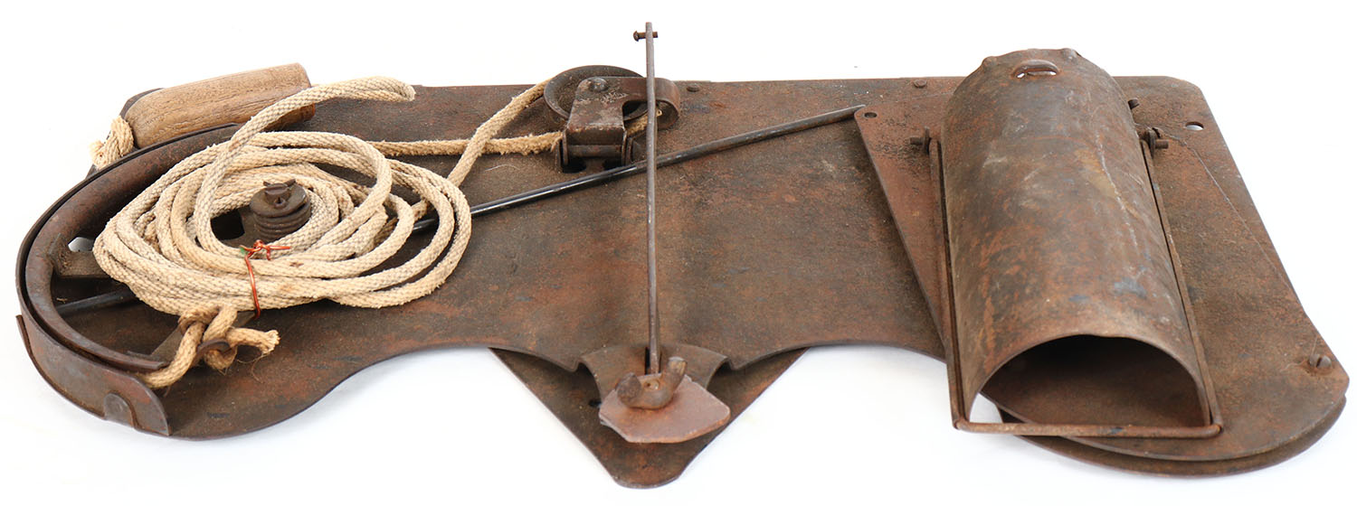 RARE! Peters Cart. Co Duv Rock Trap Thrower, # 5562, circa 1930s, has rust and age soiling, 20'' x 12''. Grade: Excellent - Value: 100 to 400