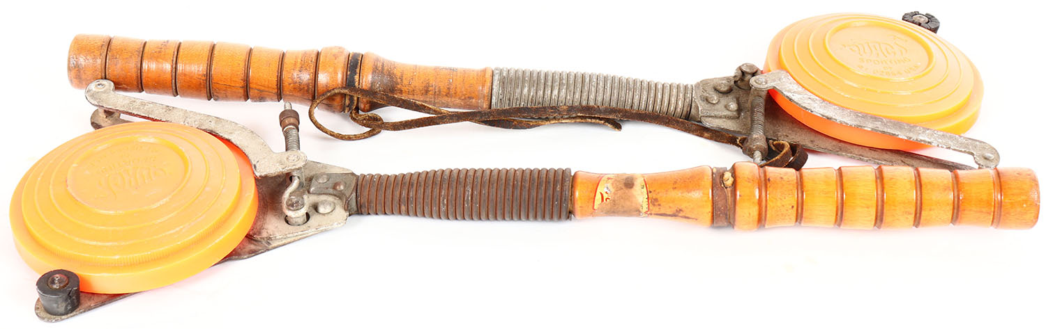 Lot of 2 Western hand trap thrower. Has age soiling. Grade: Very Good + - Value: 10 to 50