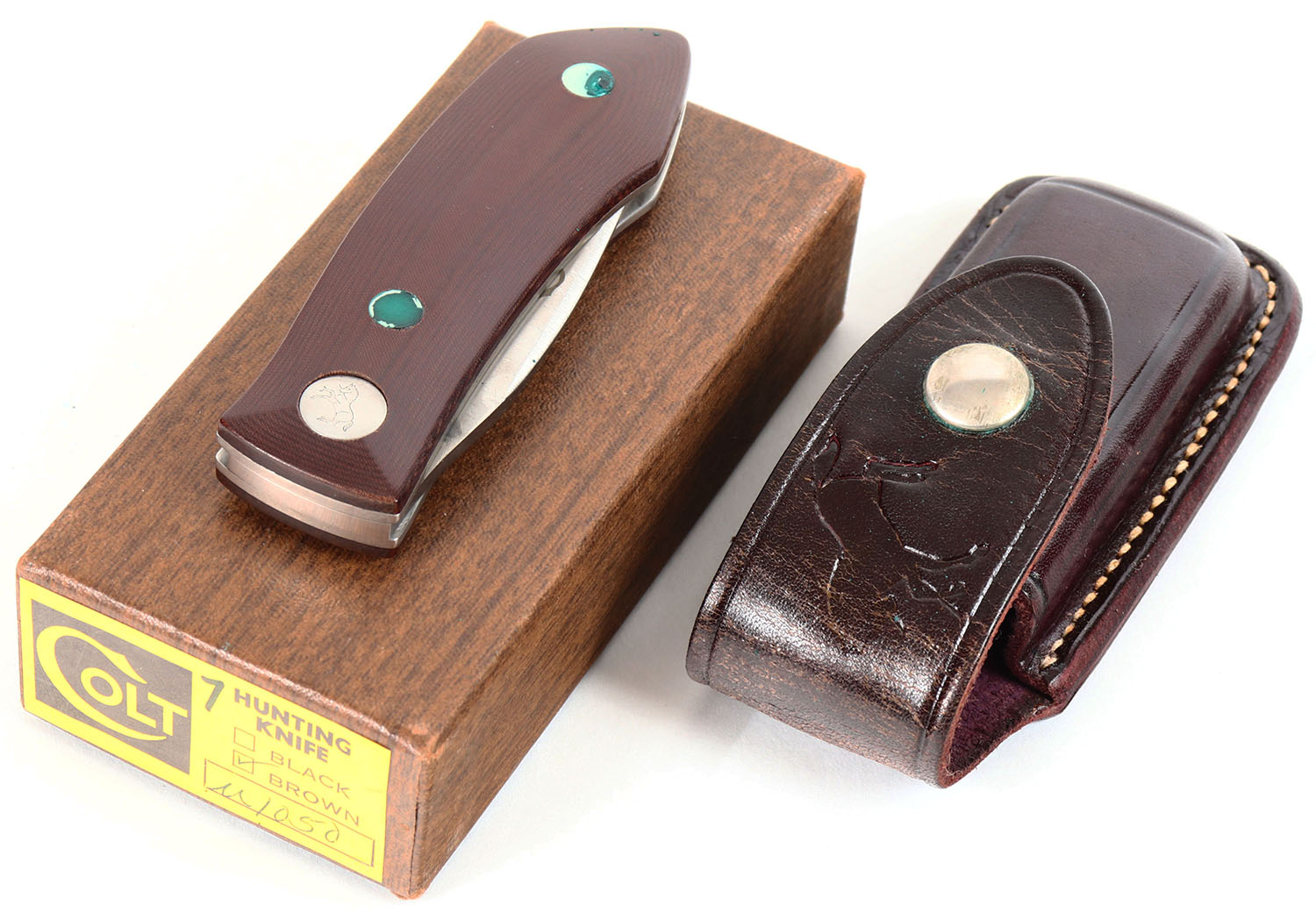 Colt knife, 4'' blades, sheath & box. Grade: Excellent++ - Value: 16 to 60