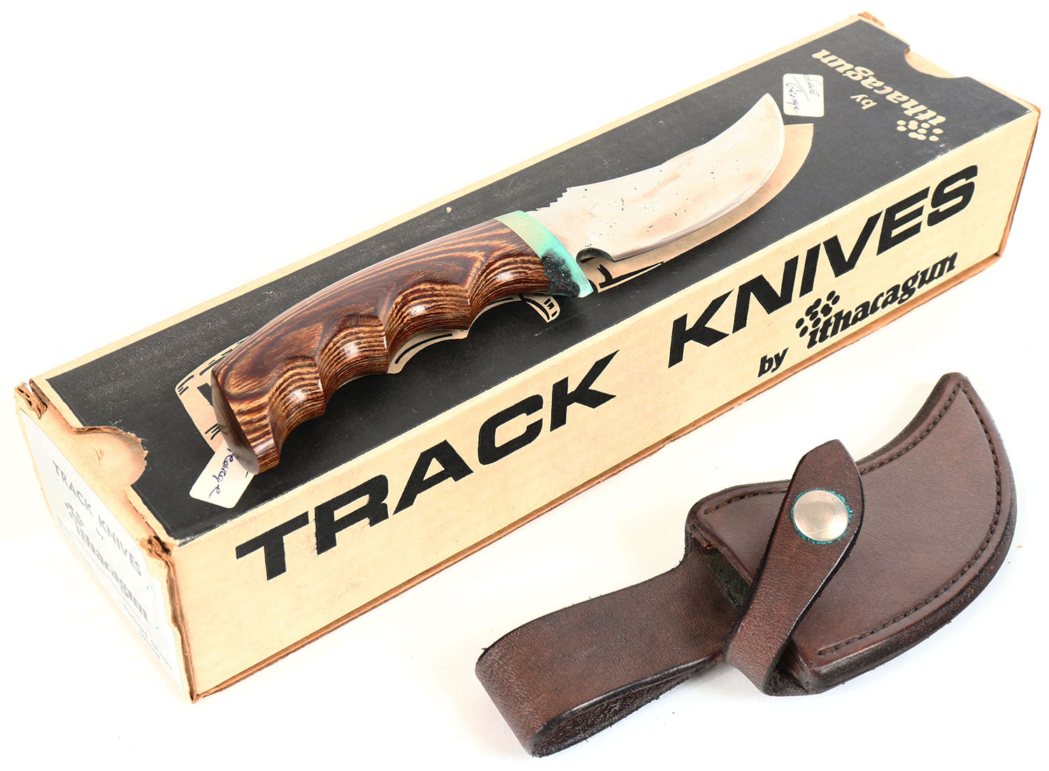 Ithaca guns Track knives knife, flathead skinner, in original box. Grade: Excellent ++ - Value: 20 to 80