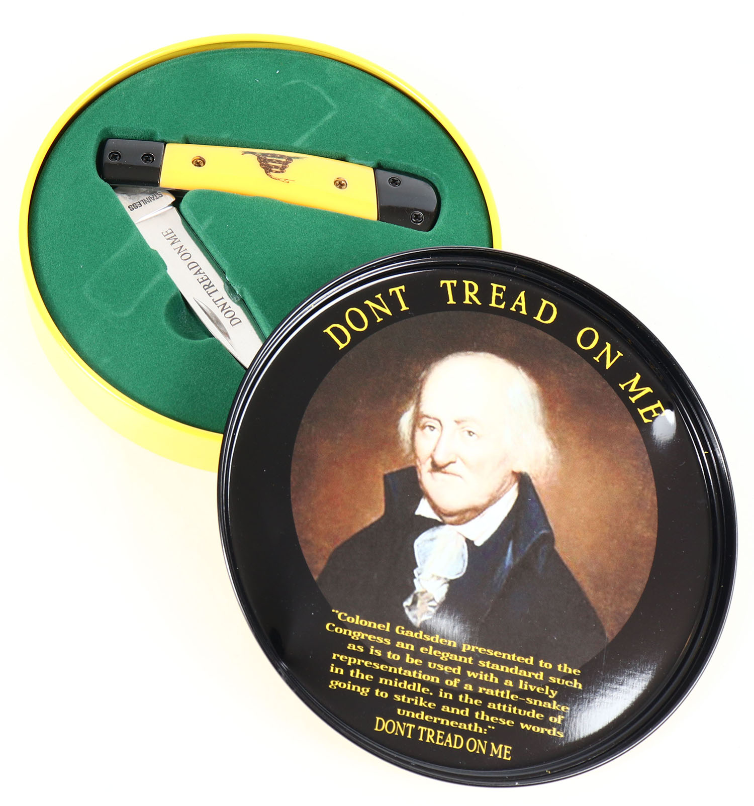 NRA Don't tread on me knife, 2 1/2'' blade, in orignal case. Grade: Excellent ++ - Value: 10 to 40