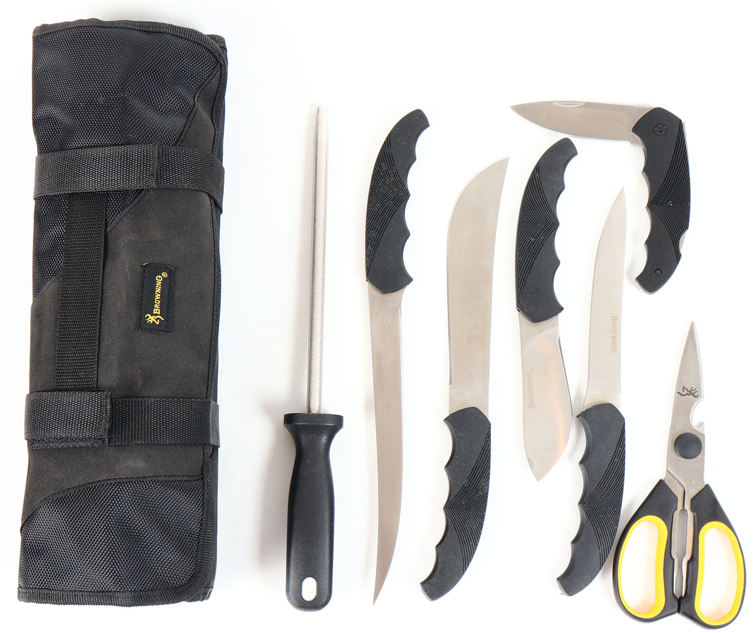 Browning set of knives and a pair of scissors, in a case, all bright and clean. Grade: Excellent ++ - Value: 20 to 80