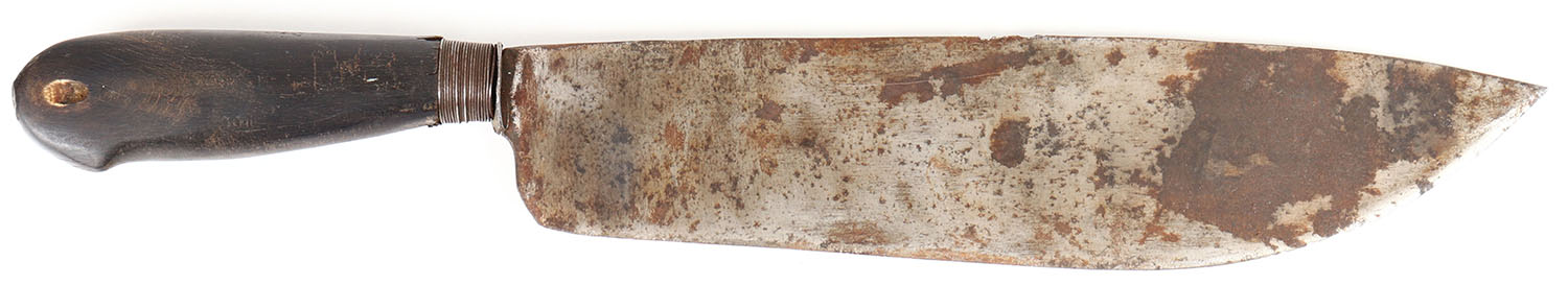 Large knife, ''NM SAYUL'' marked on blade, 11'' blade, wood handle, has rust. Grade: Very Good - Value: 20 to 60