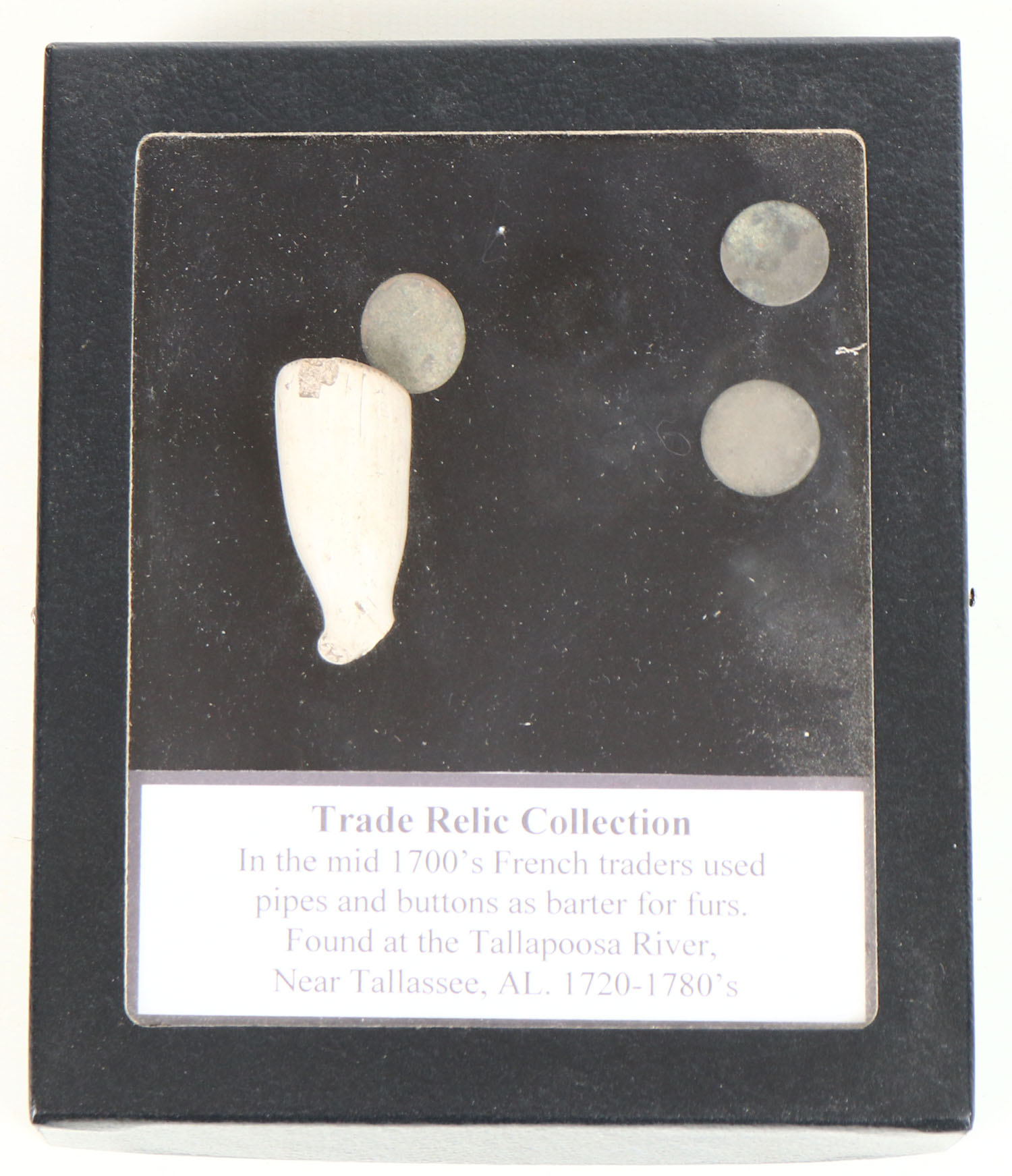 Trade relics, in the mid 1700 French traders used pipes and buttons as barter for furs. Grade: Very Good ++ - Value: 30 to 90