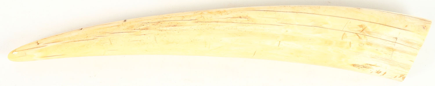 VERY LARGE ivory walrus tusk, marked on end, Cape Pernes? June 1953 Alaska. Grade: Very Good ++ - Value: 100 to 500
