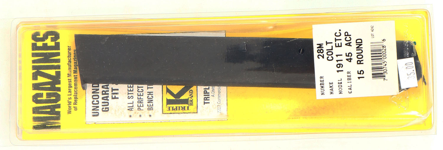 Triple K mag for Colt 1911 45 acp 15 rd. In case. Grade: Excellent ++ - Value: 16 to 60