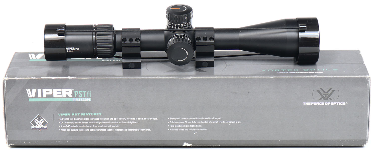 Vortex, Viper PST Gen II, PST-3158, 3-15 x 44 FFP EBR-C MRAD, Variable Magnification Rifle Scope, NIB, 30mm Tube Diameter, Illuminated Reticle. Grade: MINT - Value: 400 to 800