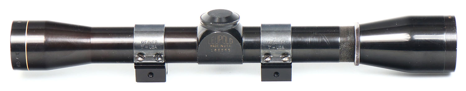 Leupold M8 4x rifle scope, with weaver mounts, clear view with fine hair reticle. Grade: Excellent - Value: 50 to 250