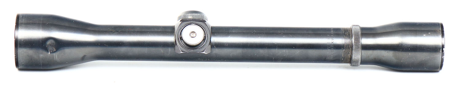 Weaver K4 rifle scope, fine hair reticle is not center, dent to scope. Grade: Very Good - Value: 4 to 50