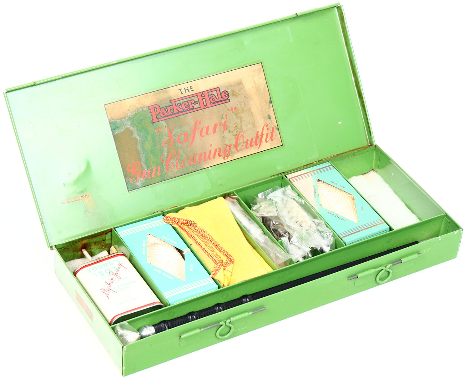 RARE! Abercrombie & Fitch Co Gun Cleaning kit Parker and Hale gun cleaning, FULL with oil tin, with cleaning patches, all bright and clean Grade: Excellent ++ - Value: 50 to 200