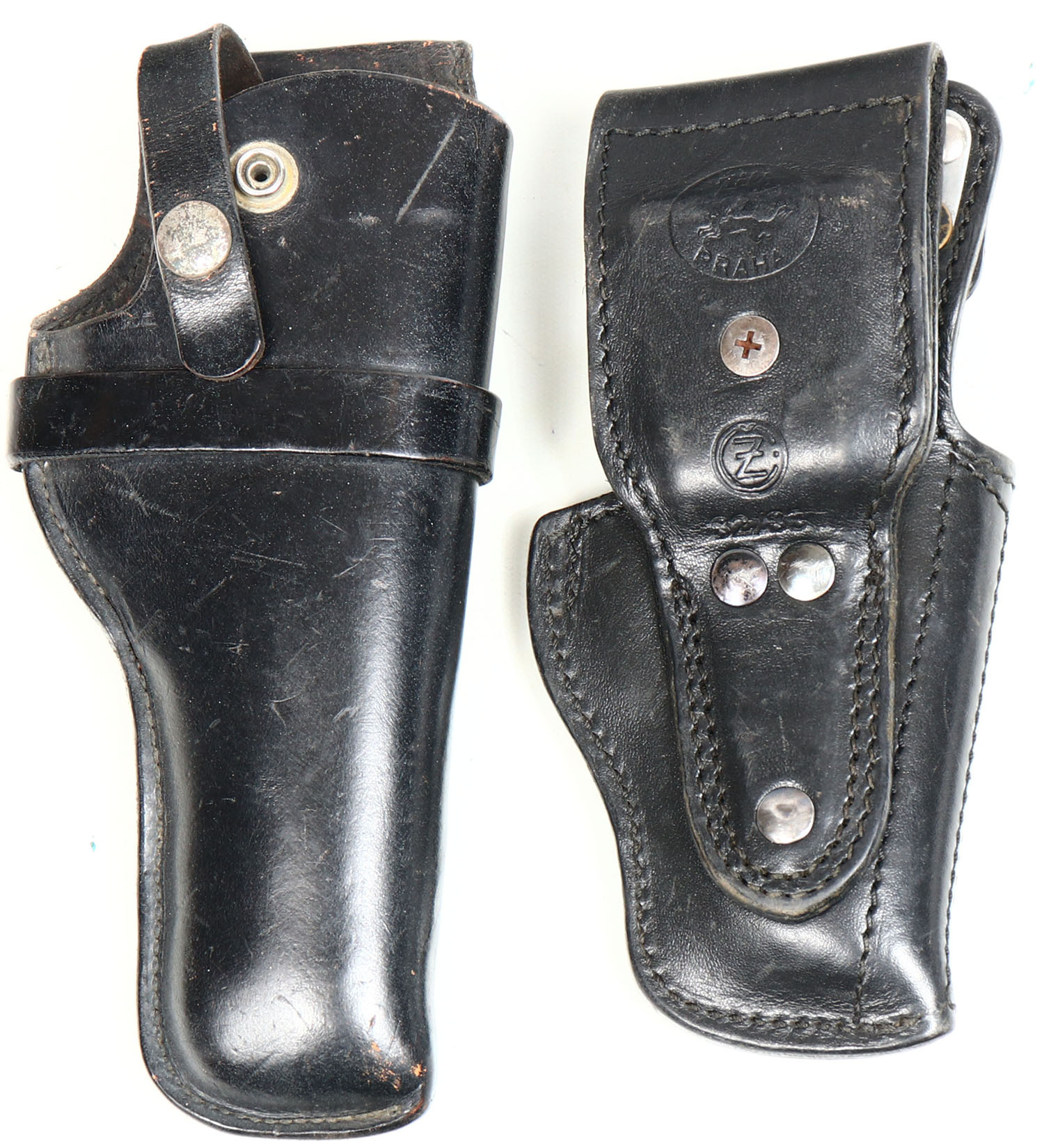 Lot of 2 antique leather pistol holsters. Grade: Very Good ++ - Value: 10 to 50