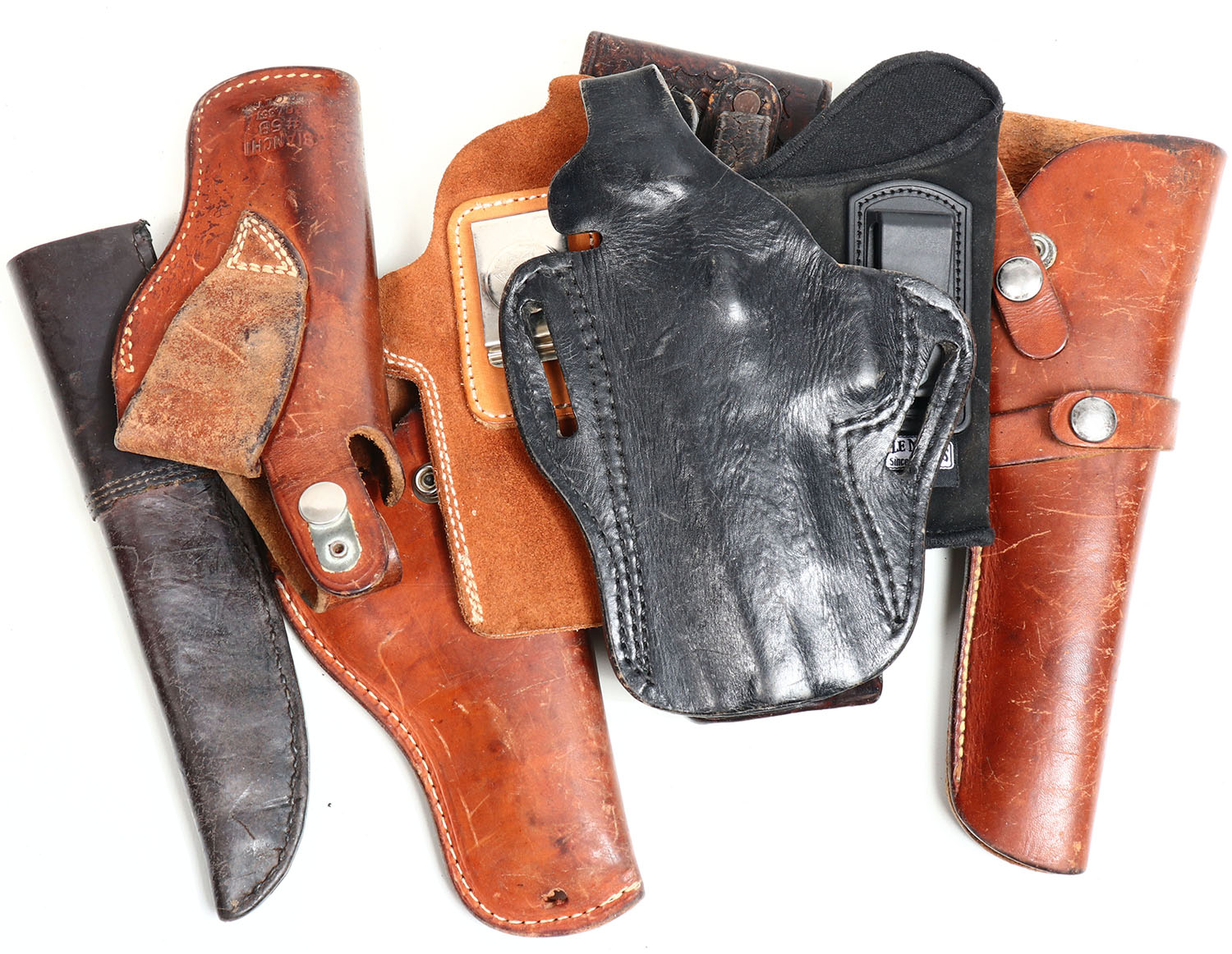 Lot of antique leather pistol holsters. Grade: Very Good ++ - Value: 20 to 60