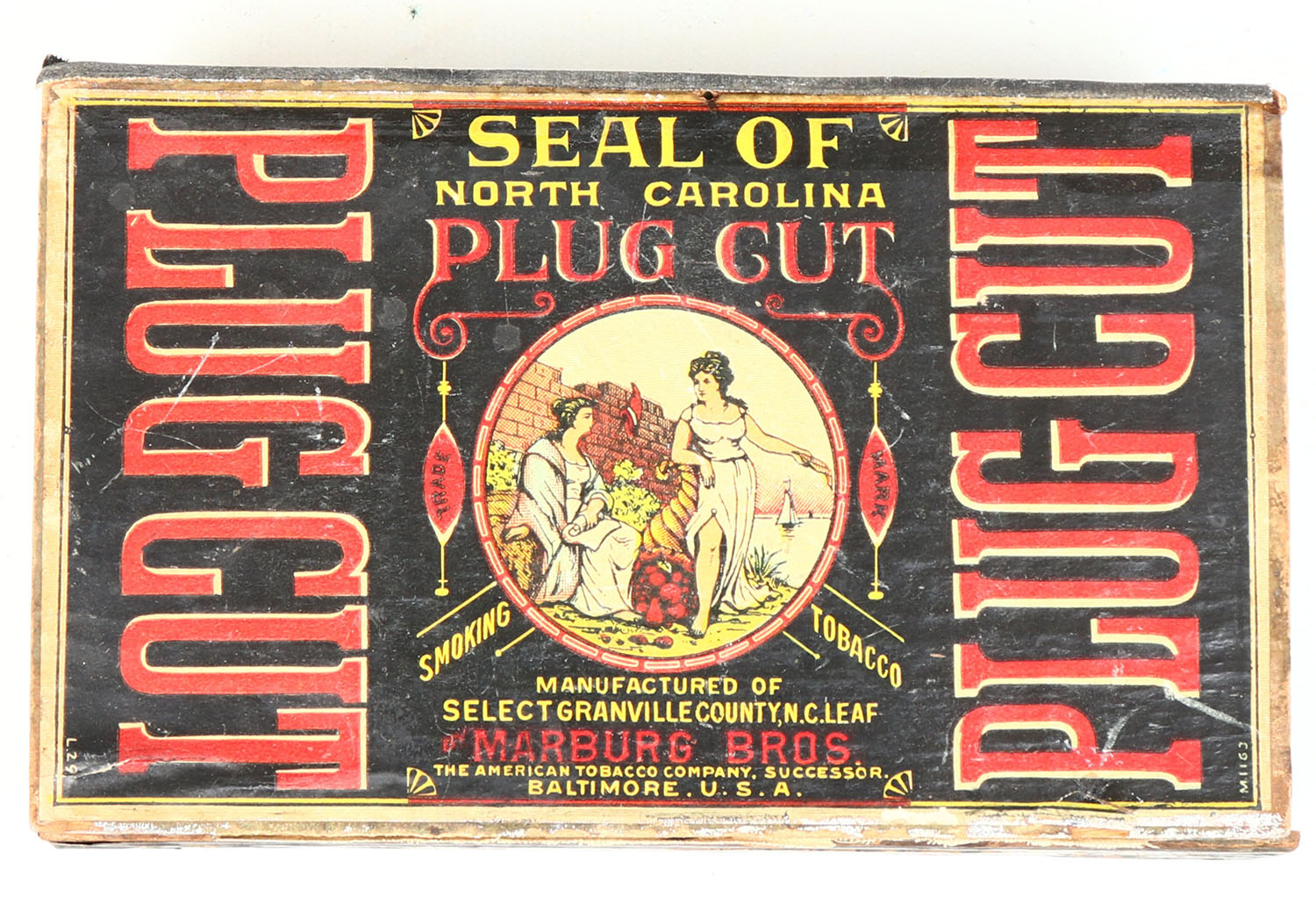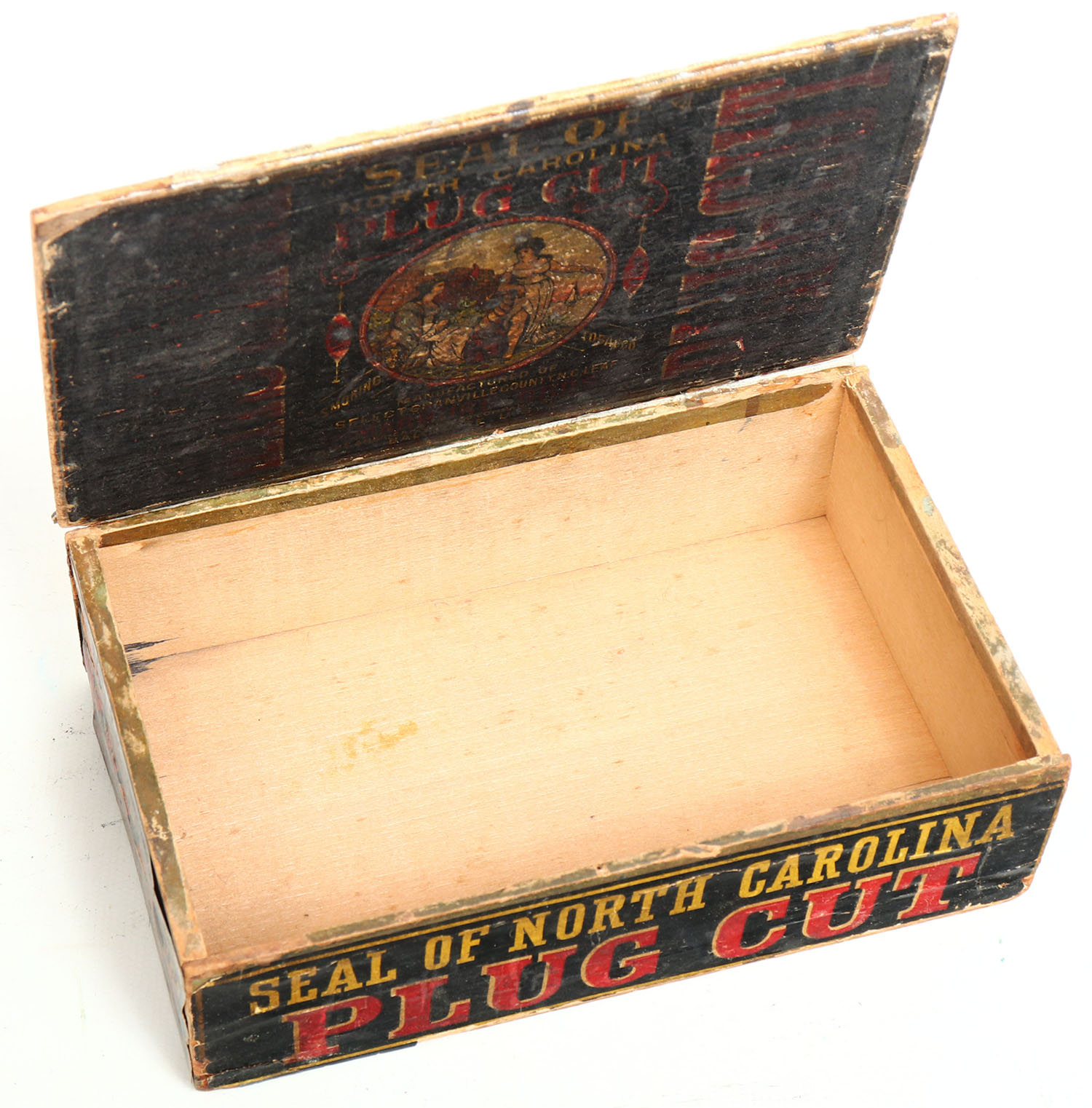 RARE! Early! Sea of North Carolina plug tobacco box, all wood with wonderful graphics, very early!, Grade: Excellent - Value: 50 to 400