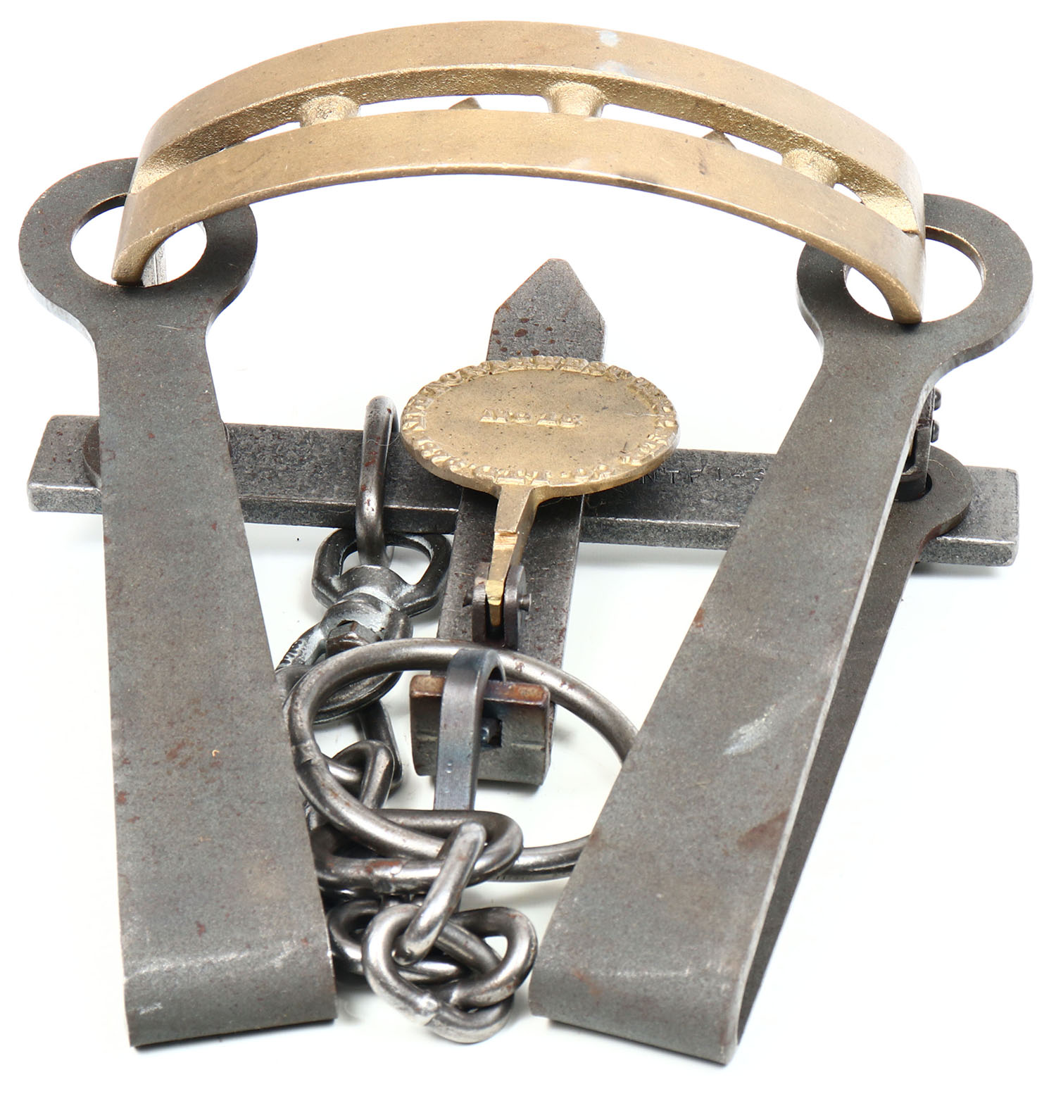 Large Northwest Terr. Fur Co #15 Bear trap, marked Pat 1876, bright and clean trap! Grade: Excellent - Value: 200 to 600