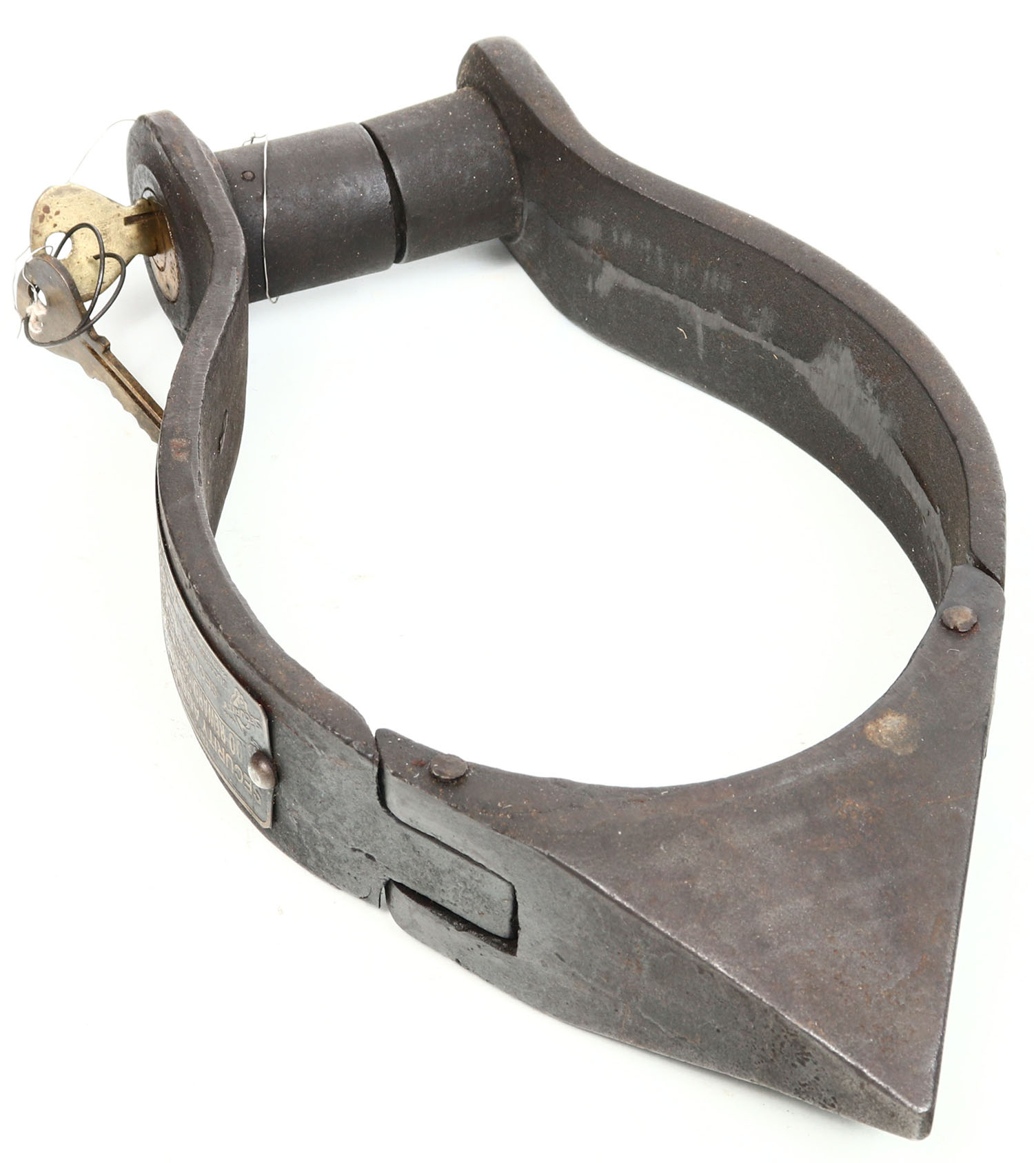 Antique Security Manf. Co., security auto theft signal system, large metal lock with key, 11'' oal. Grade: Very Good - Value: 20 to 80