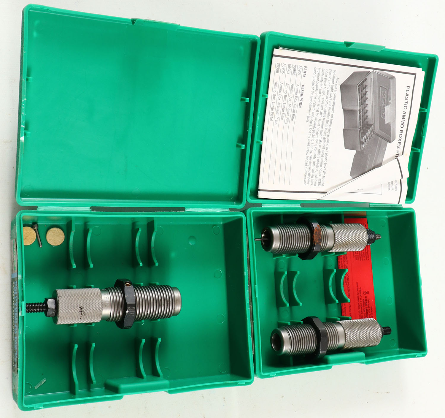 Lot of 2 RCBS reloading dies, 6MM REM & 22-250, in original box. Grade: Excellent - Value: 10 to 60