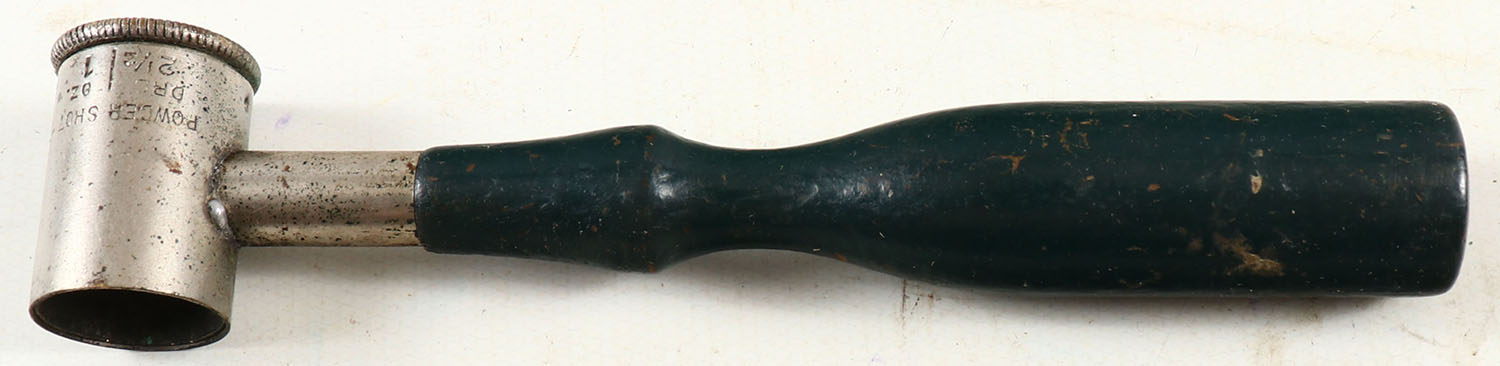 BGI Antique powder measurer, green wood handle, some rust. Grade; Very Good ++ - Value: 2 to 50