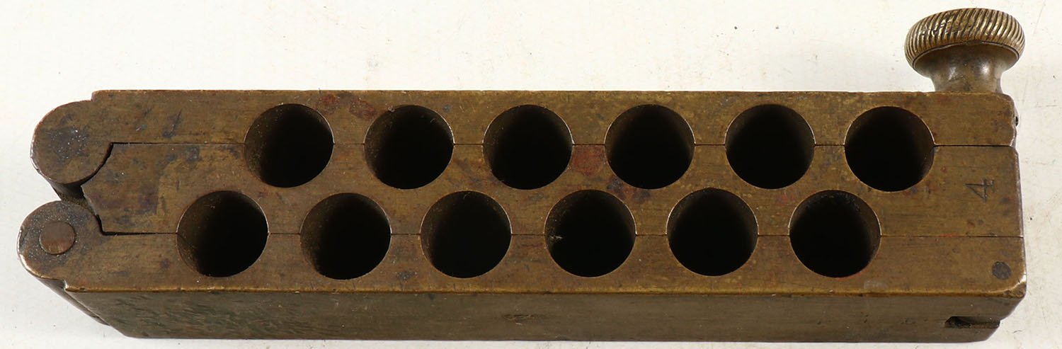 Unmarked brass reloading tool, has nicks and dings. Grade: Very Good - Value: 6 to 60