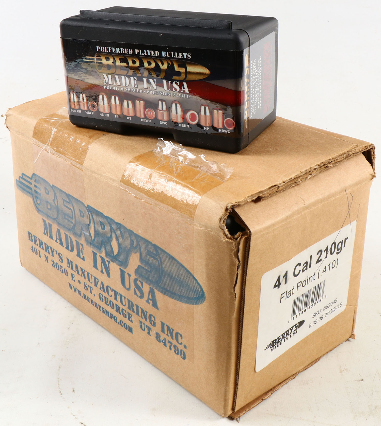 Full case of Berry's Hart Cast Bullets, 41 cal 210gr flat point, 1200 rds total. Grade: MINT - Value: 20 to 200
