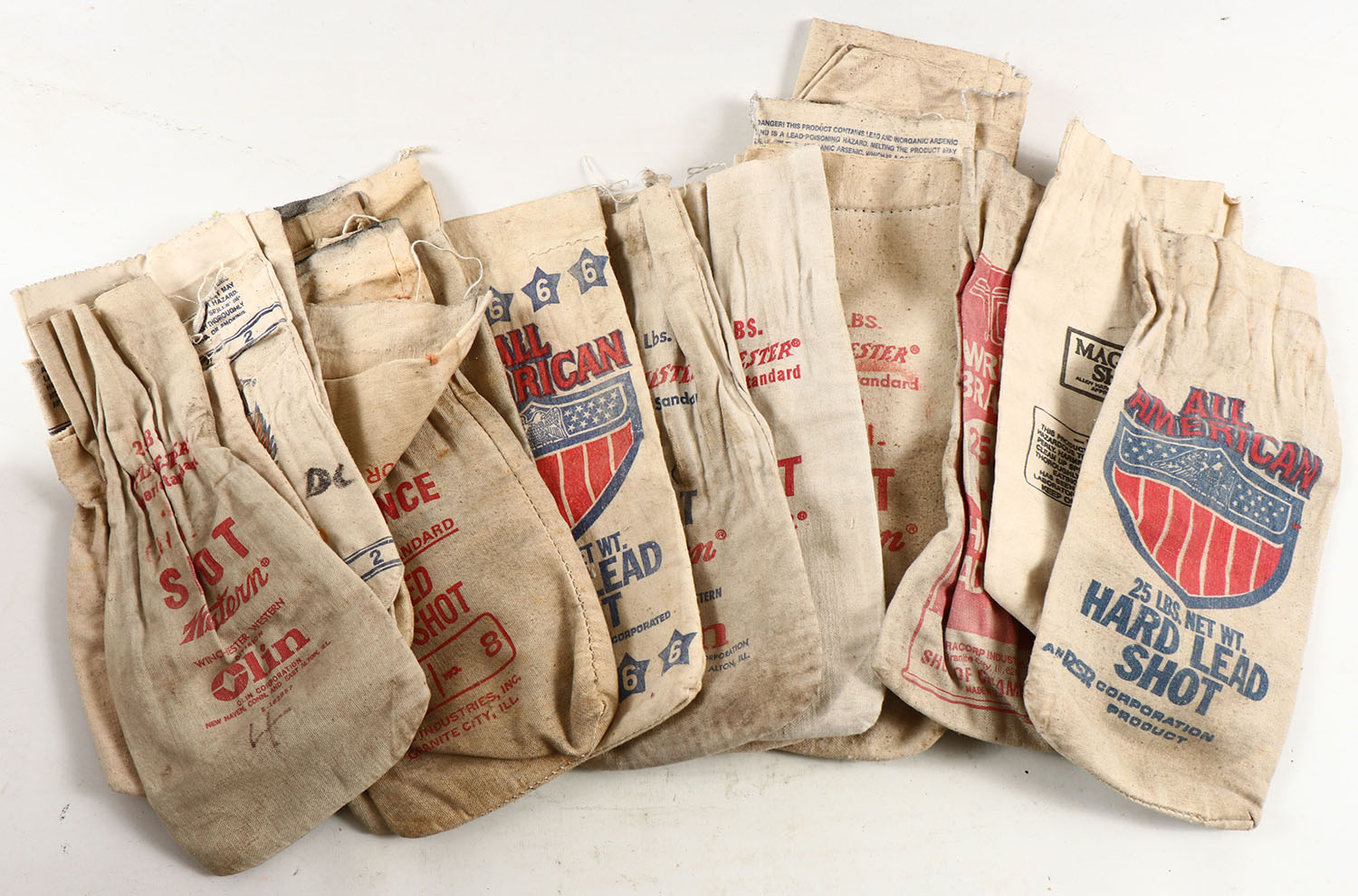 Large lot of canvas shot bags. Grade: Excellent - Value: 10 to 90