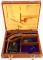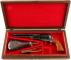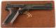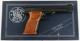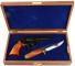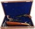 Small wood handgun display case, brass hardware, red felt interi... |