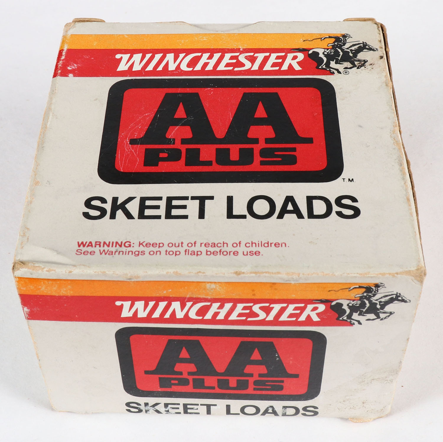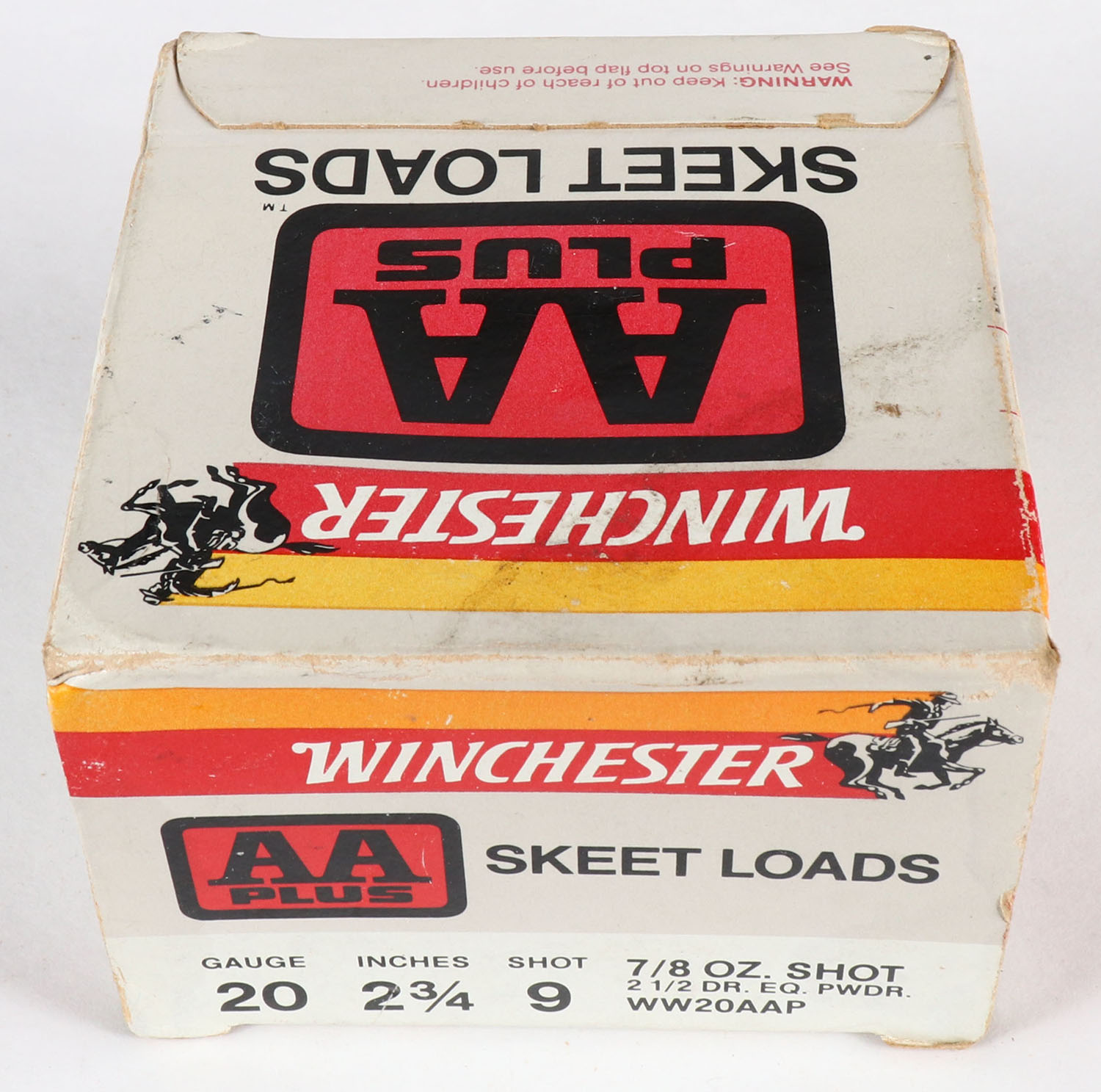 Winchester, Double A Plus Skeet Loads, 20ga, 1pc., Full, multi-colored box, shot size 9, box is solid with very nice colors, Plastic shells are very good. Grade: Very Good ++ - Value: 10 to 30