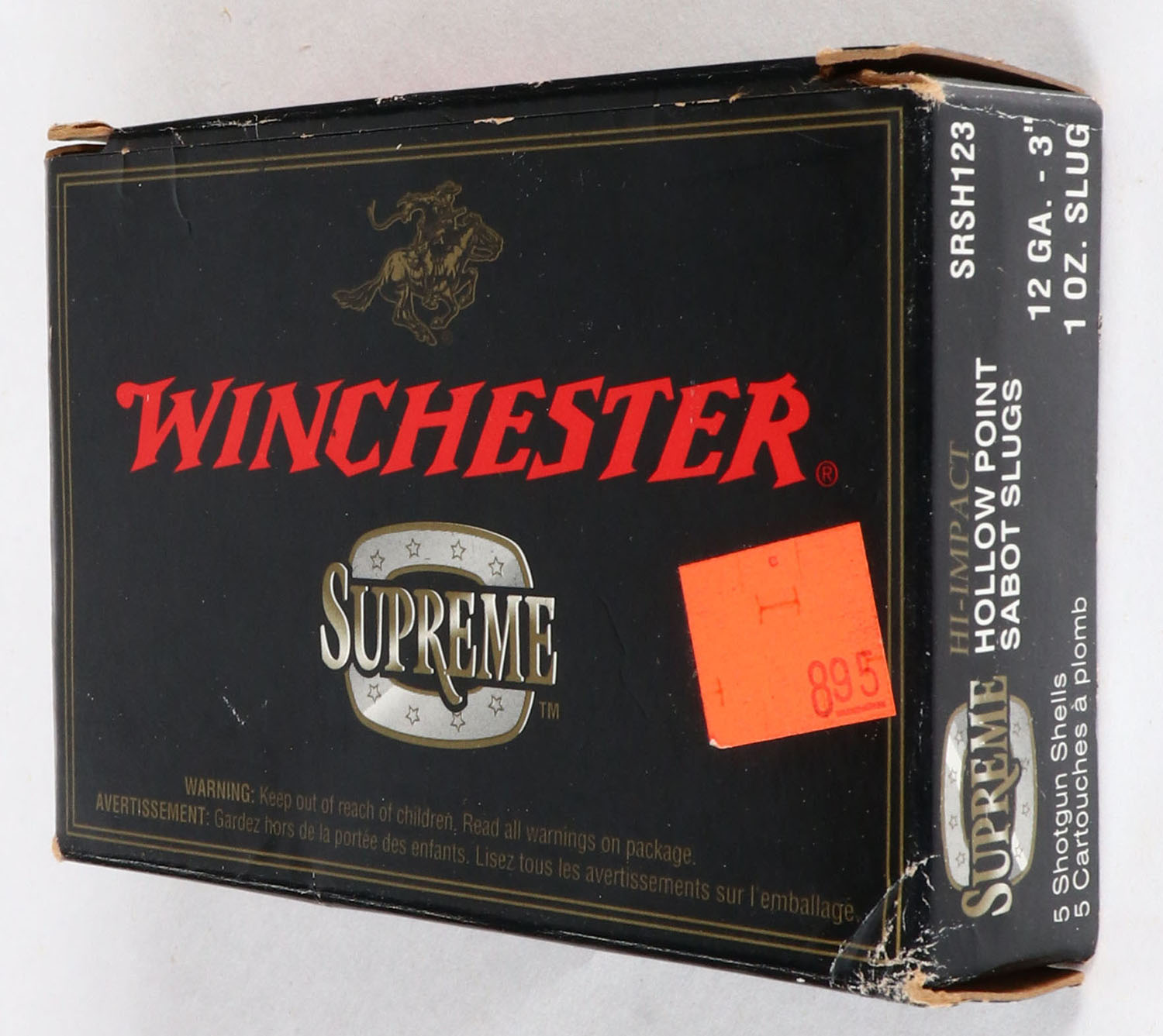 Winchester, Supreme, 12ga., 3'', 1pc., Full, 1 oz. Slug, box is very solid, shells are excellent. Grade: Excellent - Value: 8 to 20