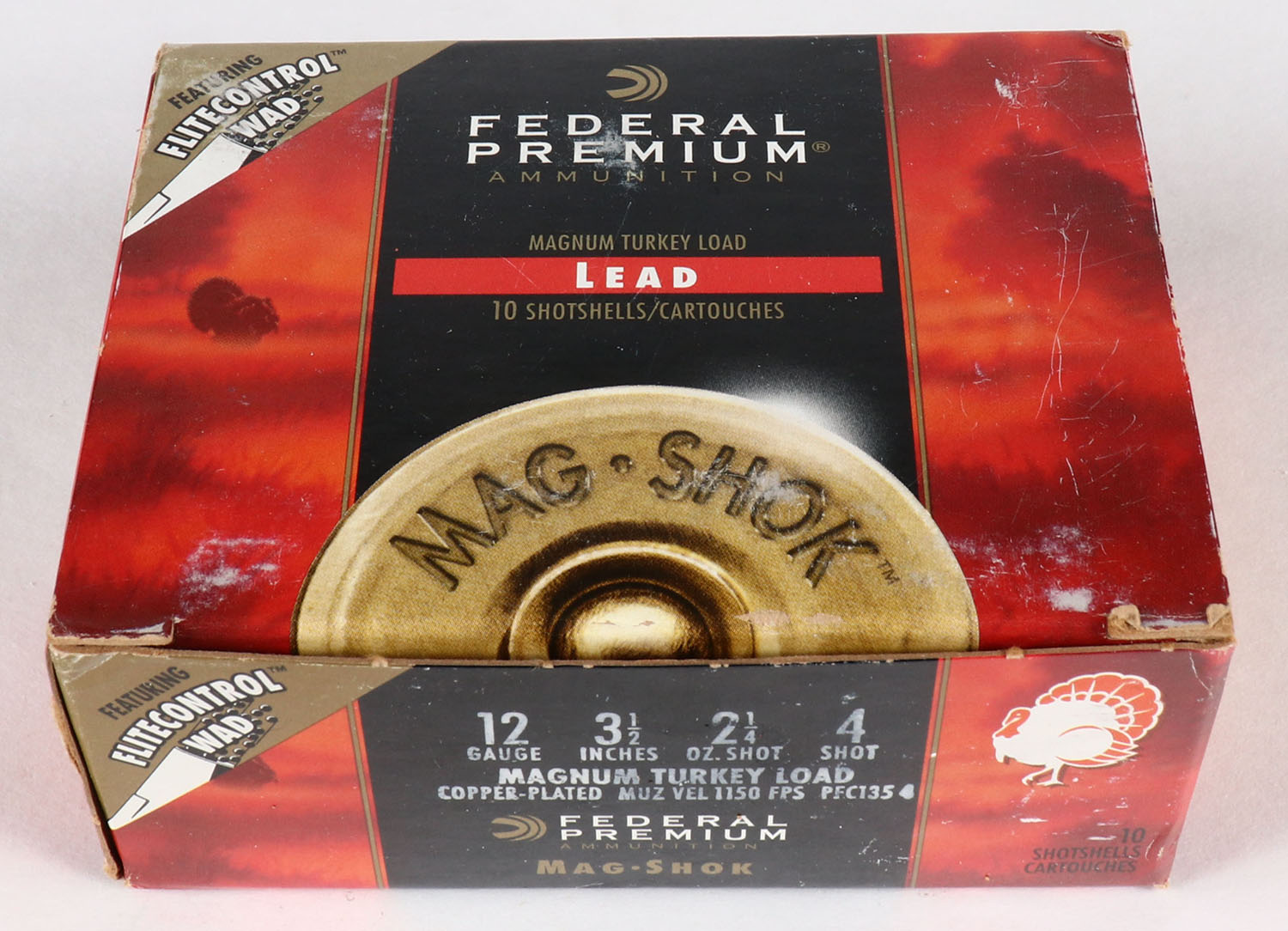 Federal, Mag Shok, 12ga., 1pc., Full, shot size 4, 3 1/2'' Magnum Turkey Load, multi-colored box, box is very solid, shells are excellent. Grade: Excellent - Value: 10 to 30