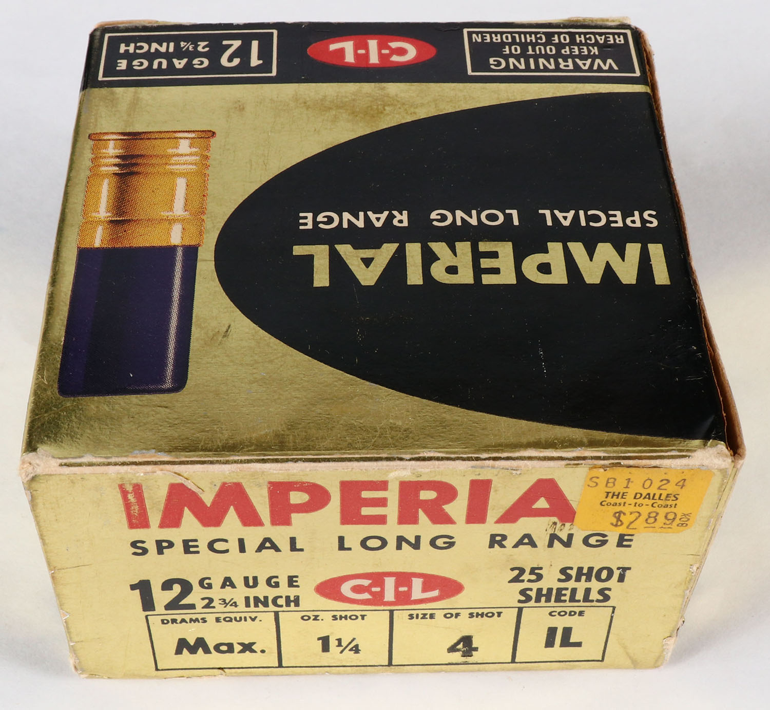 CIL, Imperial, 12ga., 1pc., Full of incorrect brands, shot size 4, multi-colored box, box is solid, shells are good. Grade: Very Good - Value: 6 to 20