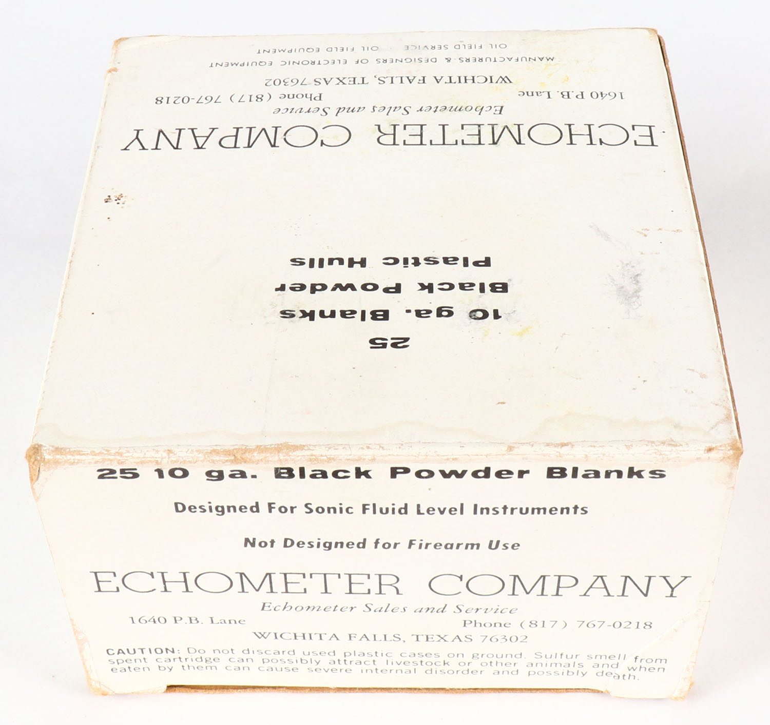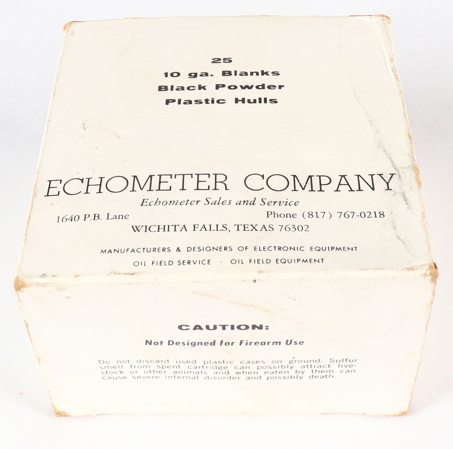 Echometer Company, Black Powder Blanks, 10ga., 1pc., Full, White box with black print, box is solid, shells are very good. Grade: Very Good ++ - Value: 10 to 30