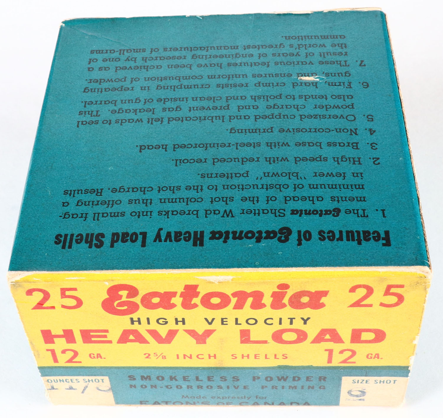 Eatonia, Heavy Load, 12ga., 1pc., Empty, shot size 6, multi-colored box, box is very solid with great colors. Grade: Excellent - Value: 40 to 200