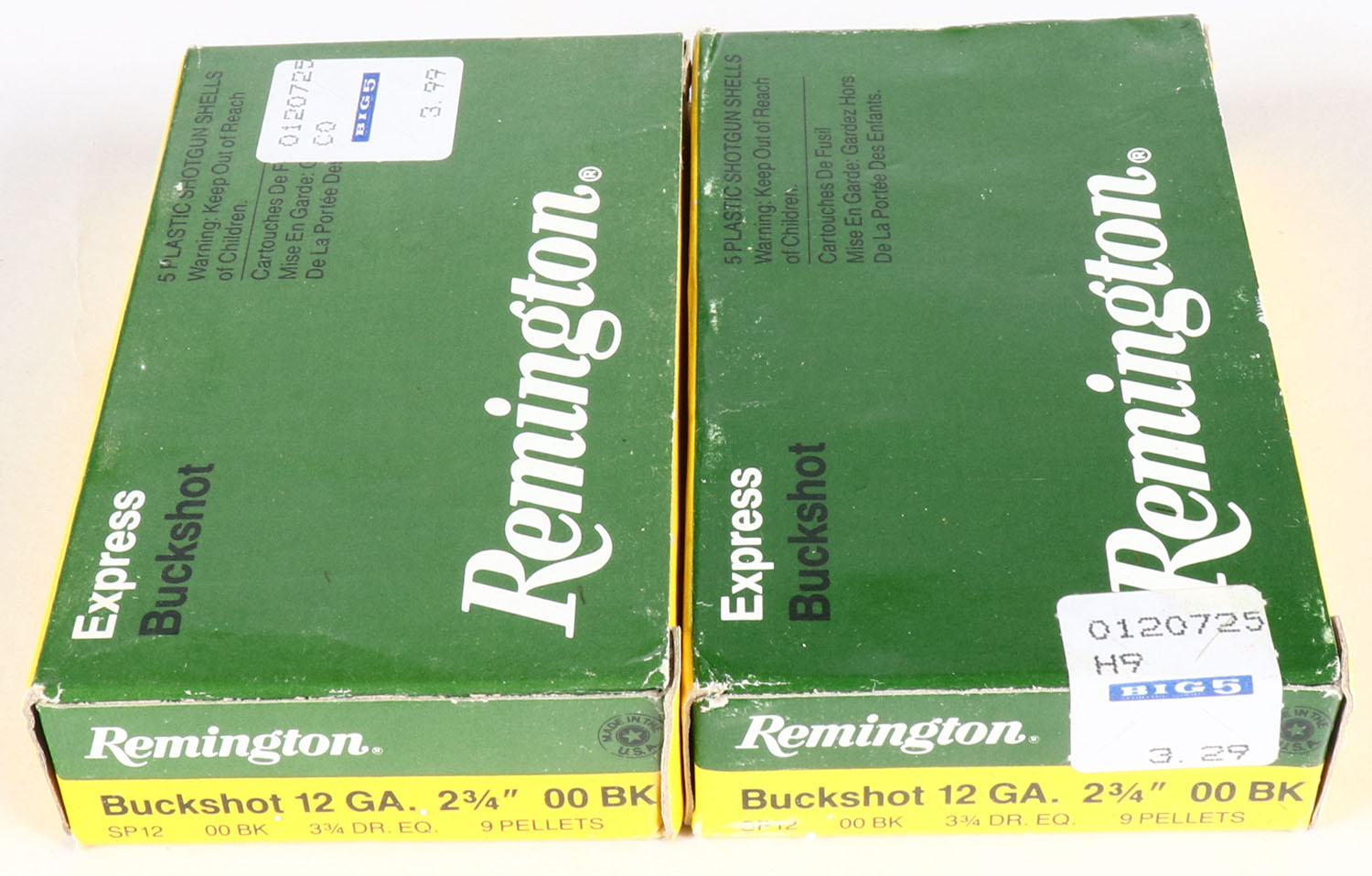Lot of 2 Remington, 12ga., 1pc., shot size 00 BK, Appears Full, multi-colored boxes. Grade: Very Good ++ - Value: 8 to 20