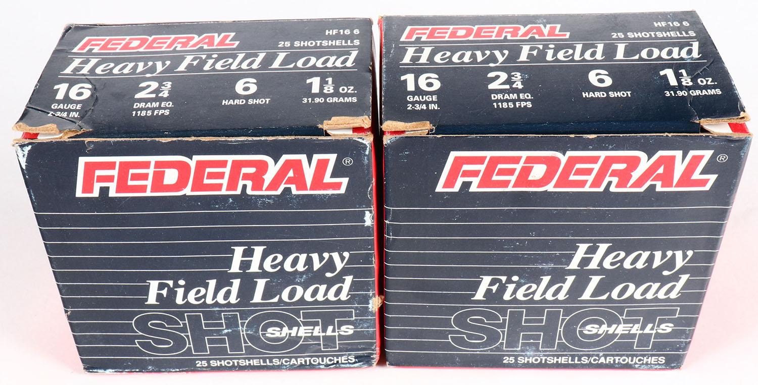 Lot of 2 Federal, 16ga., 1pc., Appears full, shot size 6, multi-colored box. Grade: Excellent - Value: 10 to 40