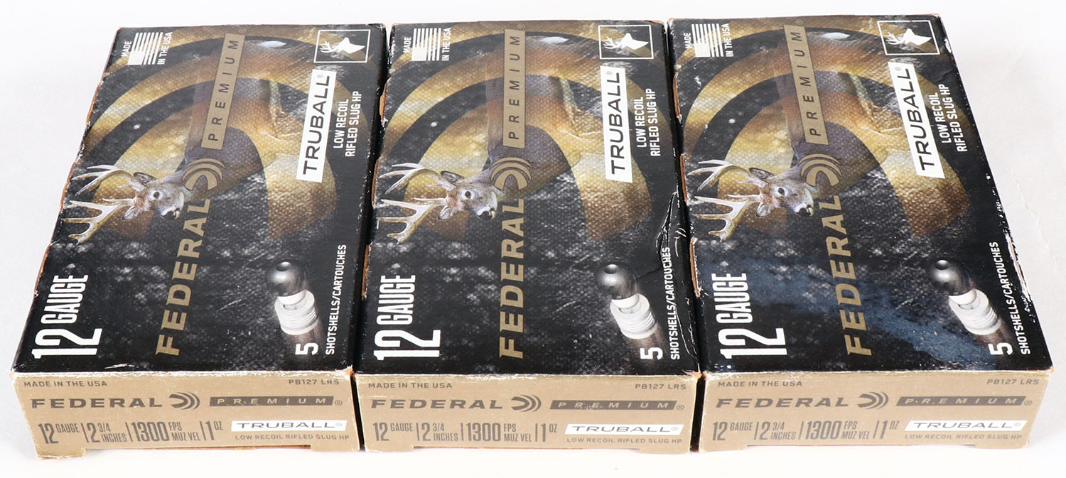 Lot of 3 Federal, 12ga., 1pc., Appears full, shot size Rifled Slug TRUBALL, multi-colored box. Grade: Excellent - Value: 10 to 30