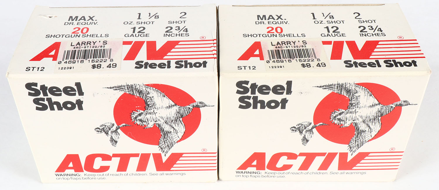 Lot of 2 Activ, 12ga., 1pc., Appears Full, shot size 2, multi-colored boxes. Grade: Excellent - Value: 10 to 30